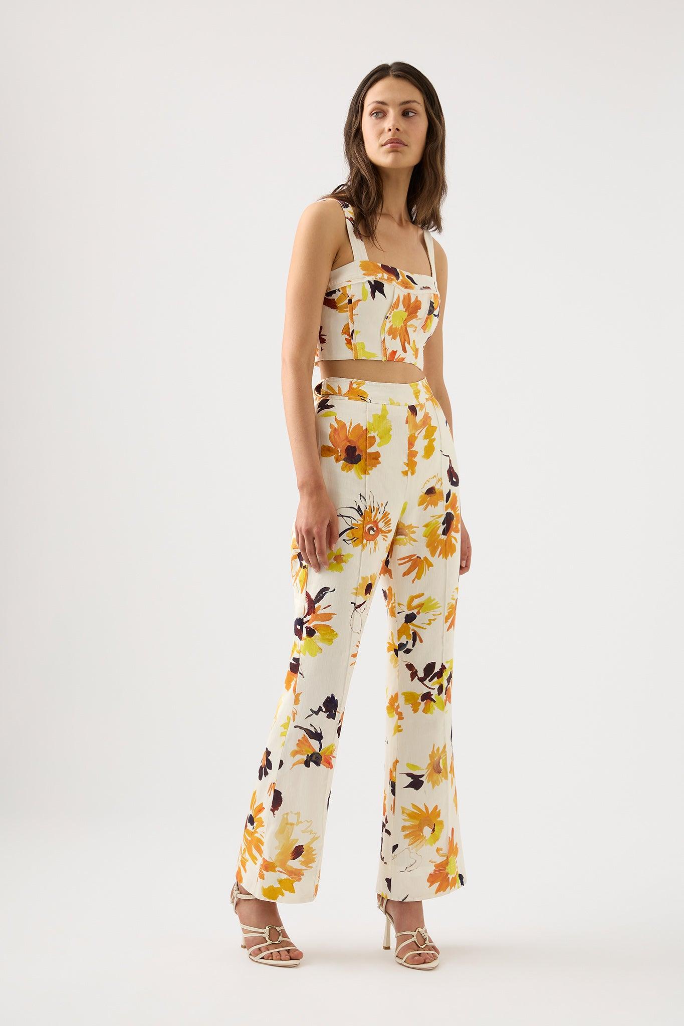 PRODUCT DETAILS High waisted pant Flared silhouette Side seam pockets D-ring adjusters across side waist Invisible zip at centre back Lined Shop All Pants SIZE AND FIT Model wears a size AU 8/S Model: 178cm/5’10 Bust: 85cm Waist: 68cm Hips: 94cm FABRICATION 69% Linen 31% Viscose