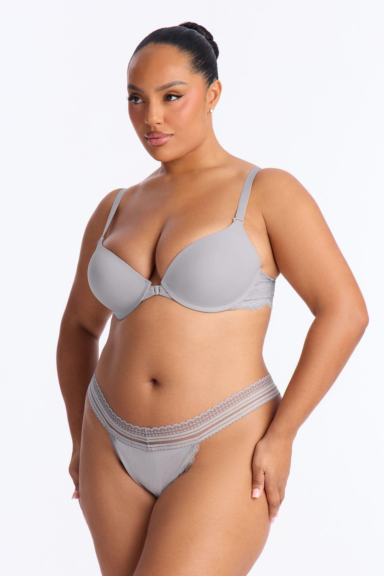 Available In Black, Grey And Hot Pink. Cotton Bikini Scallop Lace Trim Detail Minimal Back Coverage Stretch Final Sale Self: 95% Polyester 5% Spandex Imported