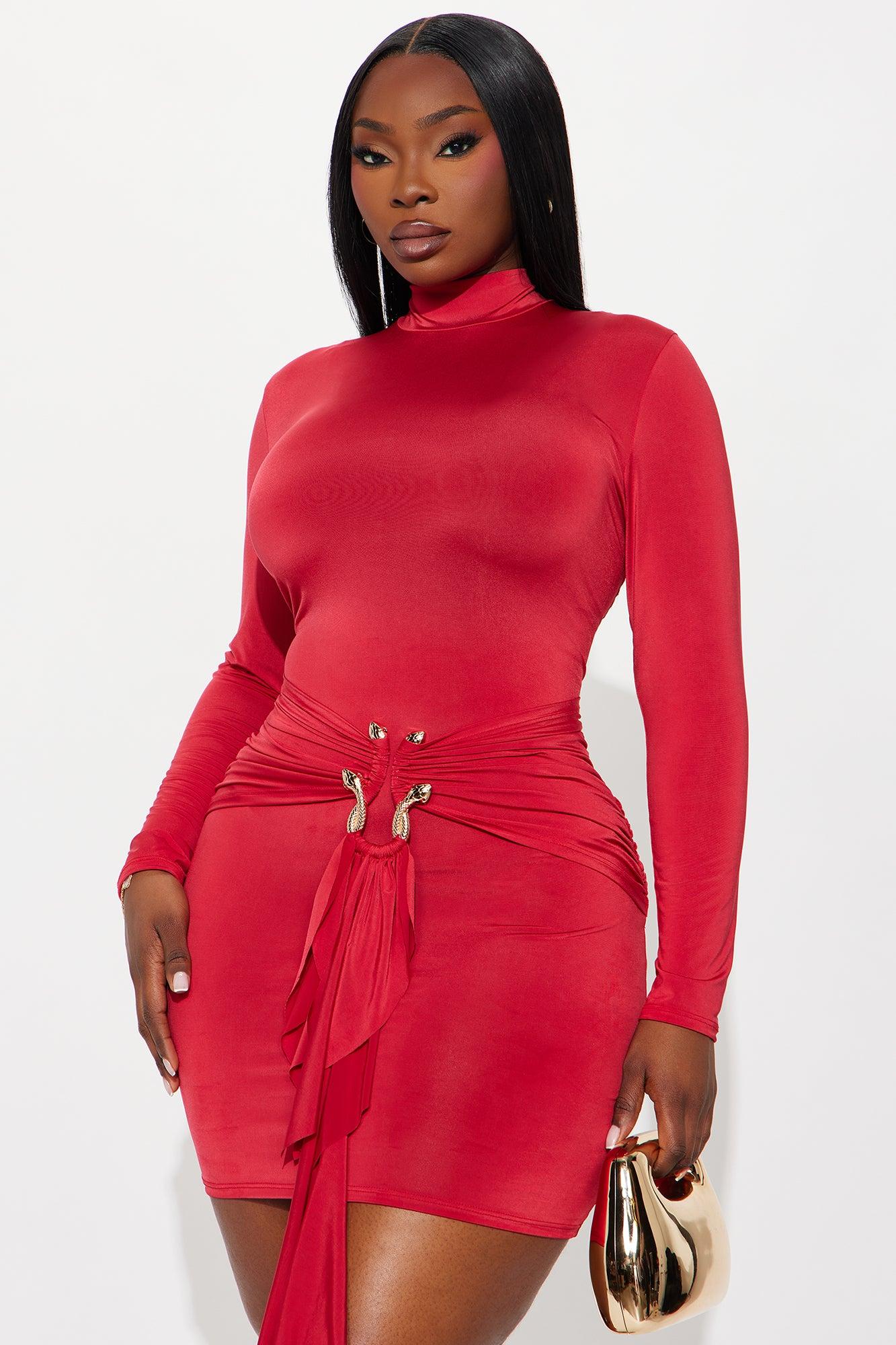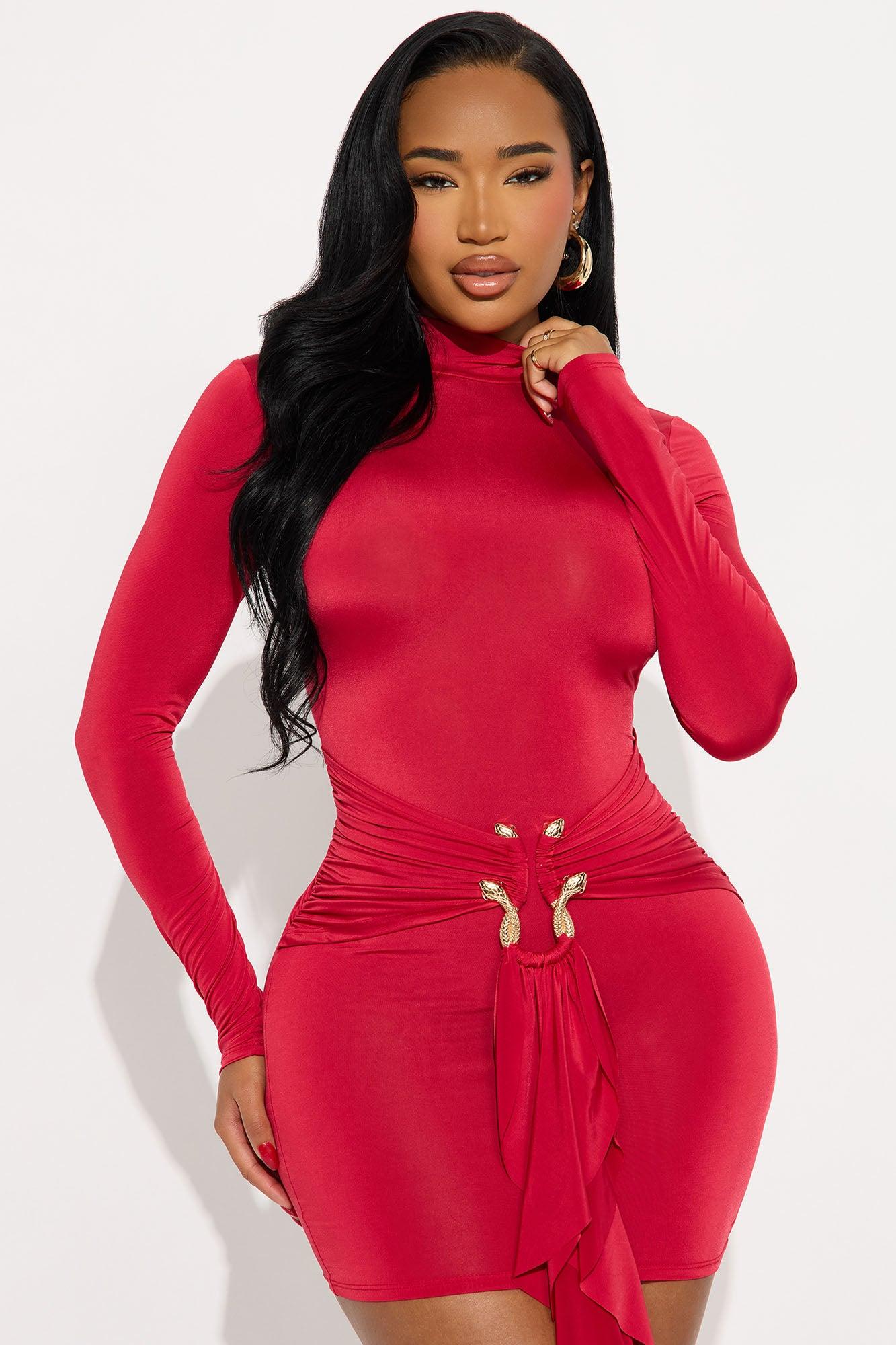 In The Moment Long Sleeve Mini Dress - DarkRed Female