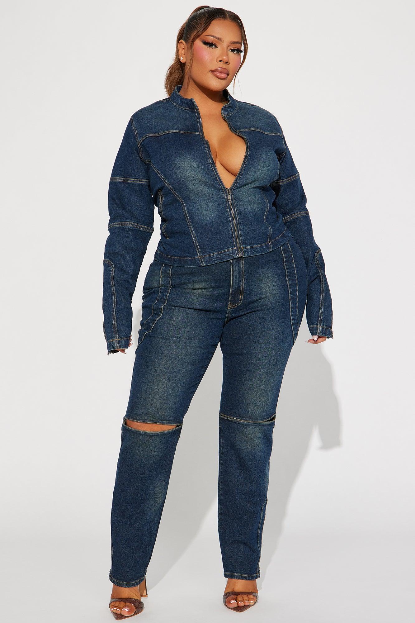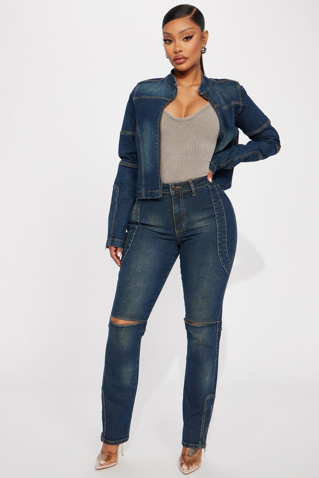 Available In Dark Wash. Pair With In The Running Denim Moto Jacket Straight Leg Jean Back Pockets 11.25" High Rise 31" Inseam Low Stretch Disclaimer: Due To The Specialized Wash Process, Each Garment Is Unique. 98% Cotton 2% Spandex Imported California Proposition 65 WARNING: Cancer and Reproductive Harm - www.P65Warnings.ca.gov.