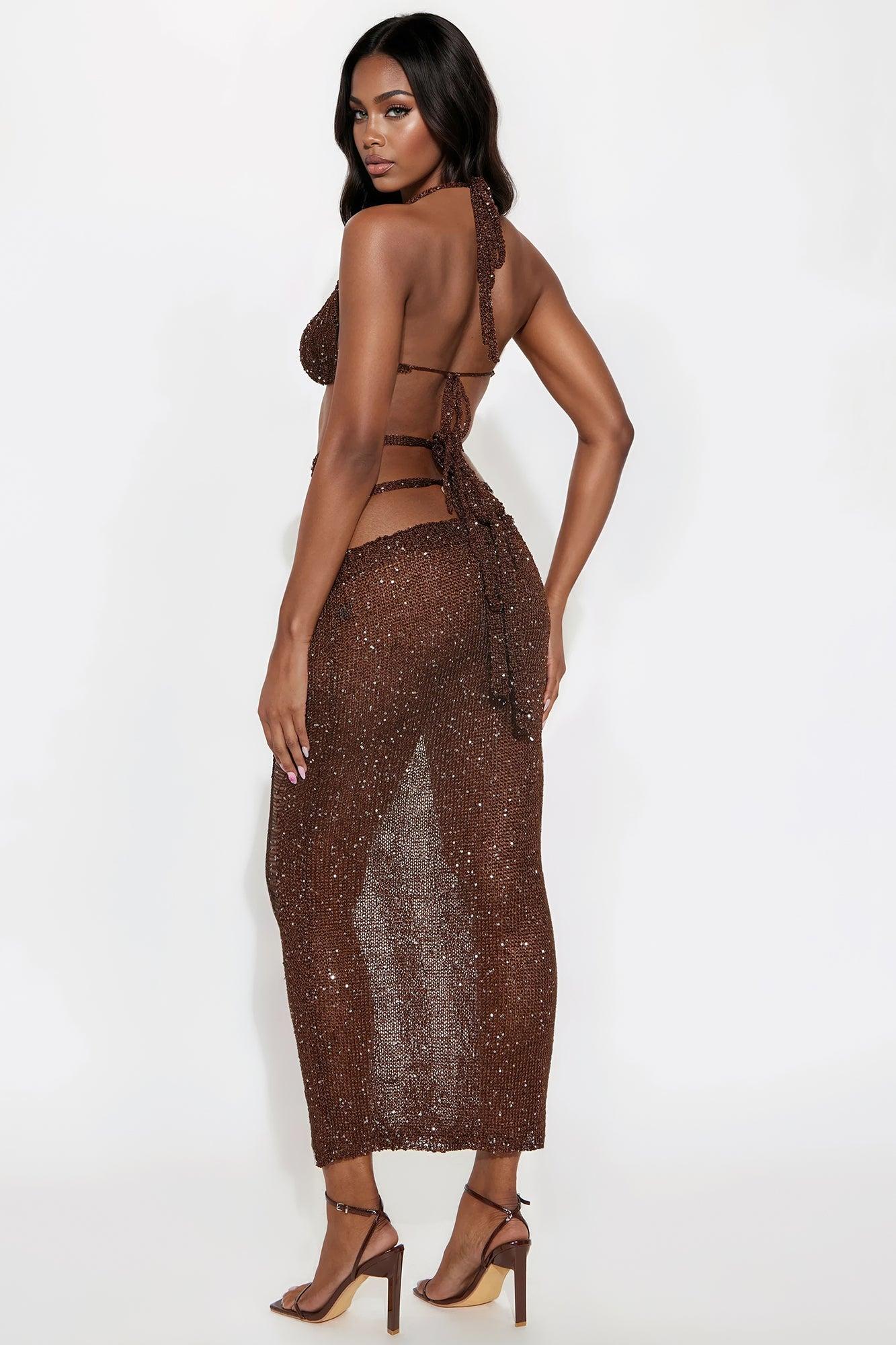 In The Villa Sequin Maxi Skirt Set - Brown Female