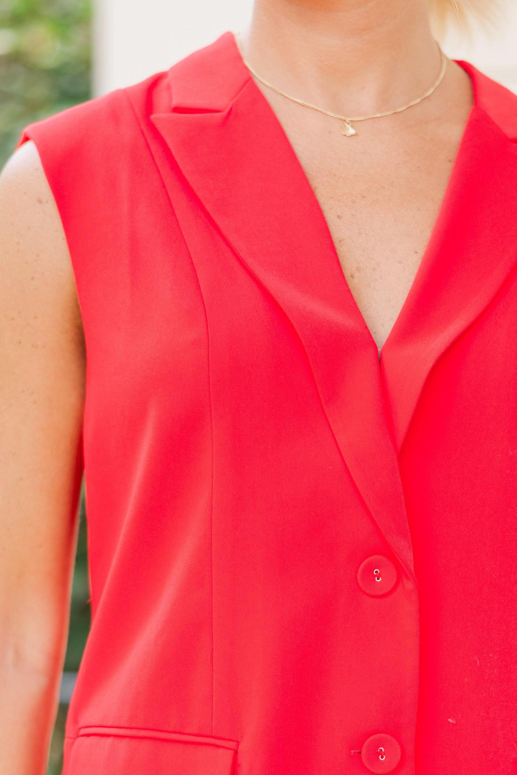 In this moment, these might just be our new favorite piece of workwear! It is so chic and we love the bold hue. This sleeveless blazer is going to look great with a chic pair of trousers but will definitely look good with the matching shorts we have available! V-neckline Button front closure Pockets No stretch Payton is wearing the small.