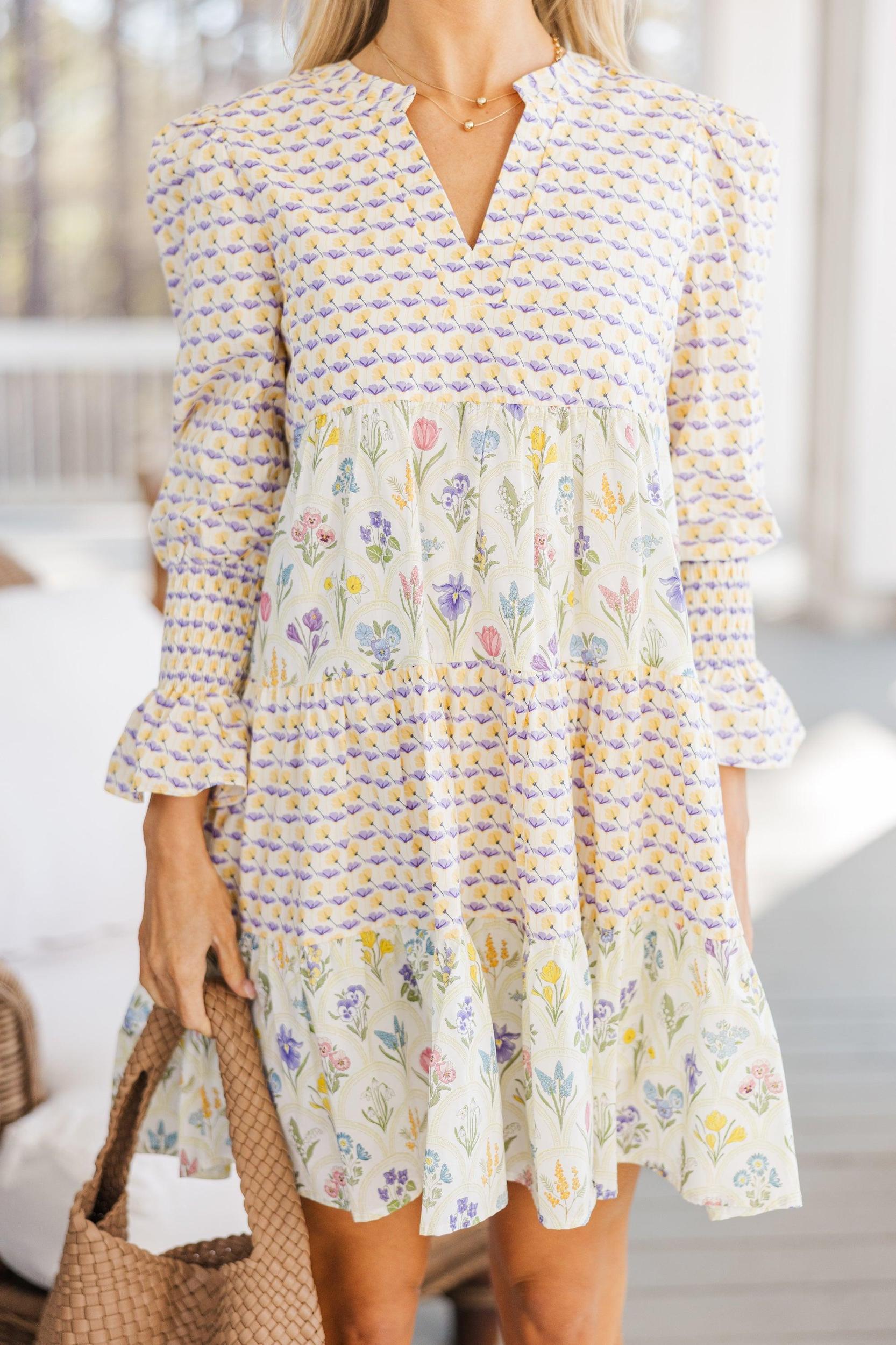 This bold beauty is perfect for the holiday season! You can wear it for date nights with heels or with a sweater over it and boot for a more casual look. No matter how you choose to wear this dress, you are sure to look and feel your best! V-neckline 3/4 flounced sleeves Tiered body Mixed print No stretch Baileigh is wearing the small.