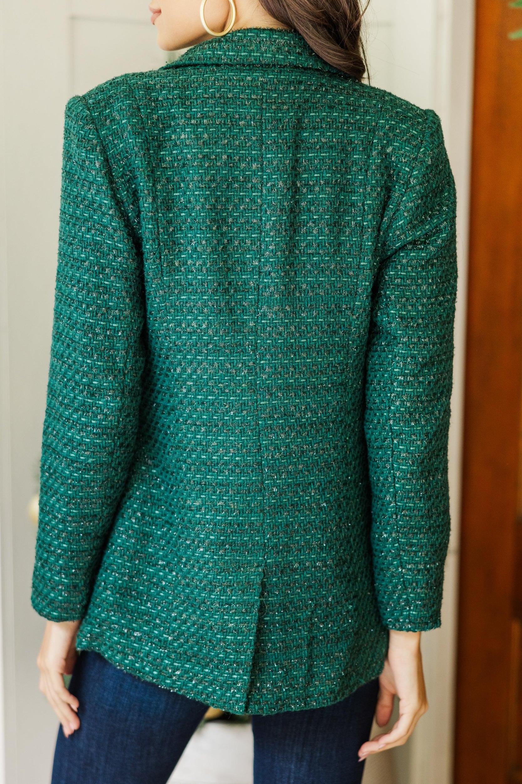 This tweed blazer is everything! We love that classic fabric and the perfect holiday hue! This tweed jacket is going to be perfect for work and definitely holiday work parties! Lapel neckline Single button front closure Long sleeves Pockets Tweed fabric No stretch Savannah is wearing the small.