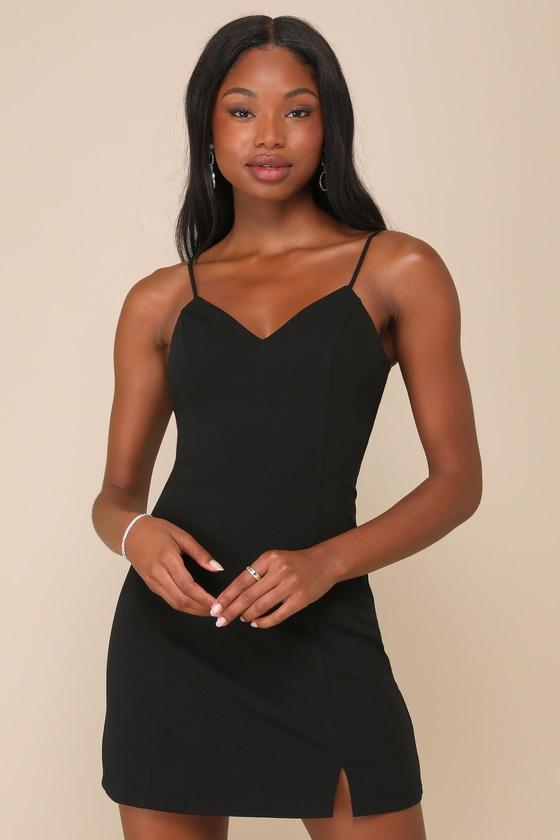 If you're looking for the perfect party-ready look, the Incredibly Flirty Black Rhinestone Bow Sleeveless Mini Dress is ready to hit the dance floor! Stretchy crepe woven fabric shapes this stunning lil' dress that features adjustable spaghetti straps, a V-neckline, and a sleeveless bodice with a detachable, rhinestone-embellished bow at the center. The figure-skimming, sheath-style silhouette features flattering seam detailing as it falls to a cute, notched mini hem. Hidden back zipper/clasp.