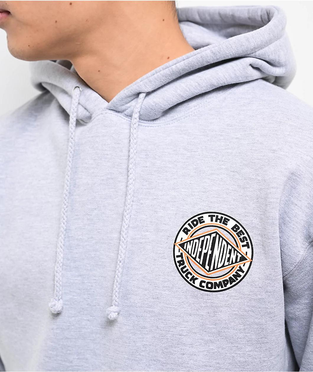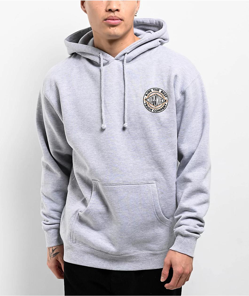 Fans of skate brand Independent will love the Summit hoodie, arriving in a casual heather grey. The back and left chest feature black, white, and orange branding for a bold pop of streetwear color.