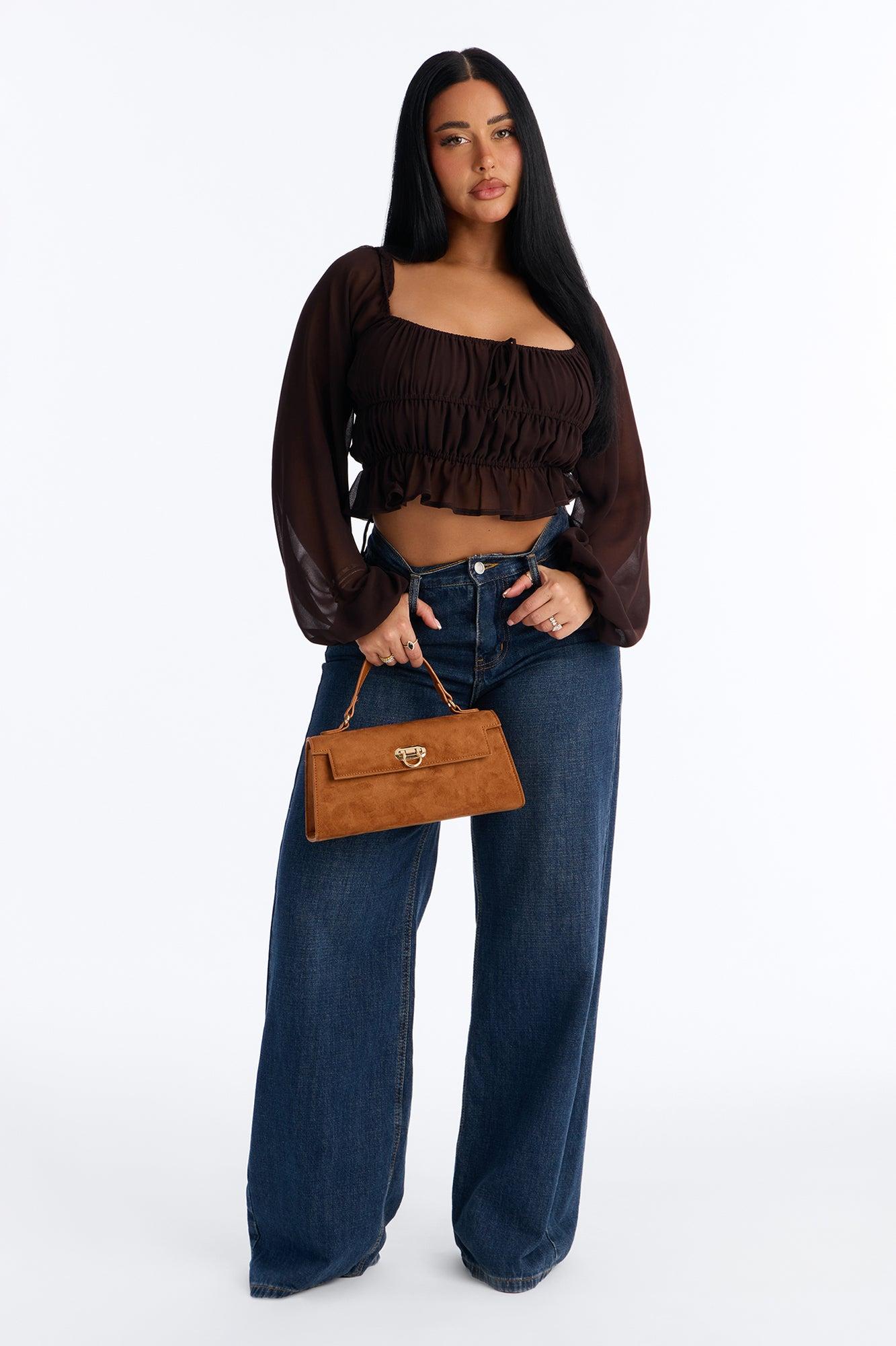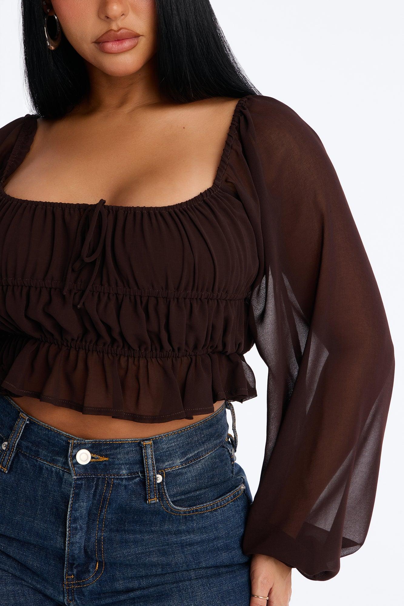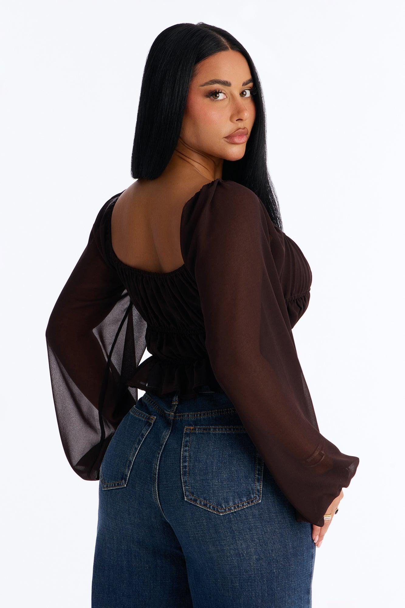 Indie Chiffon Balloon Sleeve Top - Chocolate Female