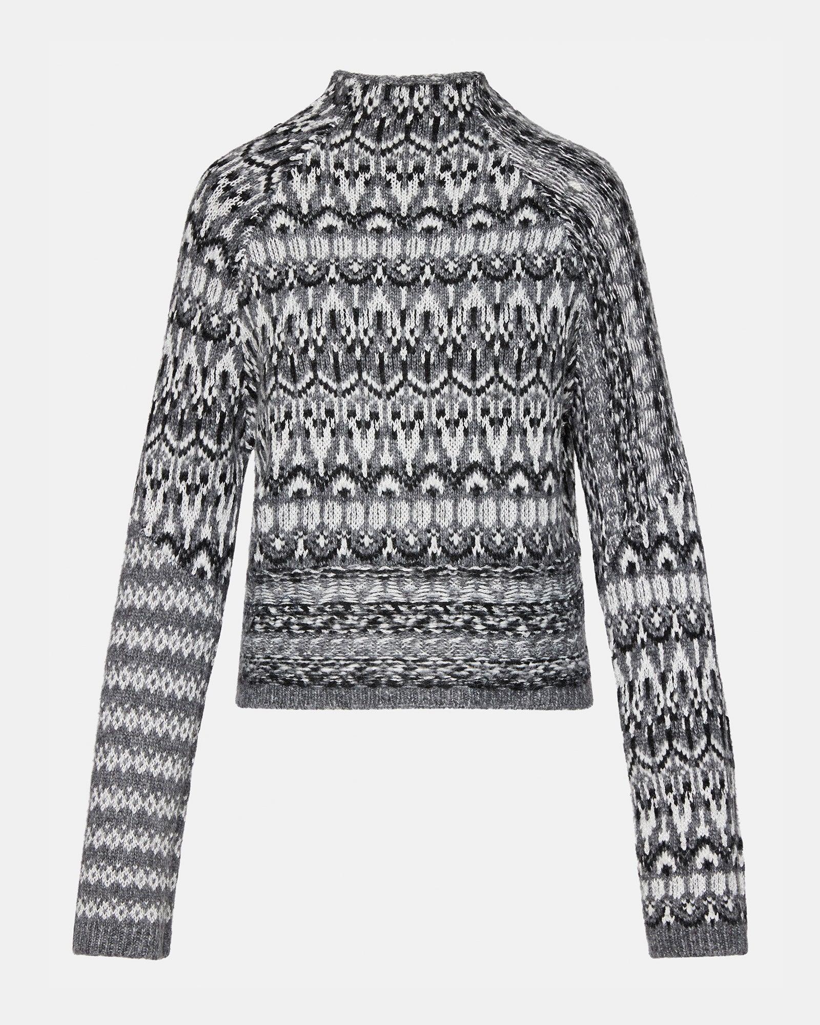Crafted with a comfy turtleneck and long sleeves, the INDIE sweater effortlessly combines style and comfort. Its charming Fair Isle pattern adds a touch of traditional charm to any outfit. Stay warm and fashionable with this must-have piece. Turtleneck long-sleeved sweater Fair Isle pattern Pullover style Length: 21.25" 81% polyester 7% acrylic 7% nylon 5% wool Hand wash Stephanie is 5ft 10in and is wearing a size large Eve is 5ft 9in and is wearing a size small Imported