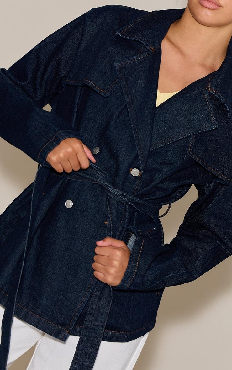 Bring edge to your outerwear with the indigo belted cropped denim trench. Made from an indigo denim material, it features a cropped length, belted waist, and trench-style design for bold style. Pair with your outfit of the day and kitten heels for a sophisticated touch.Length approx 48.5cm/19inch (Based on sample size US 4)Model wears size UK 8/ EU 36/ AUS 8/ US 4Model Height - 5ft 10inchp]:!mb-4inch>Brand: PrettyLittleThingCategory: DenimProduct type: Cropped Denim JacketColor: IndigoMaterial: Rigid DenimSleeves: LongOccasion: Day