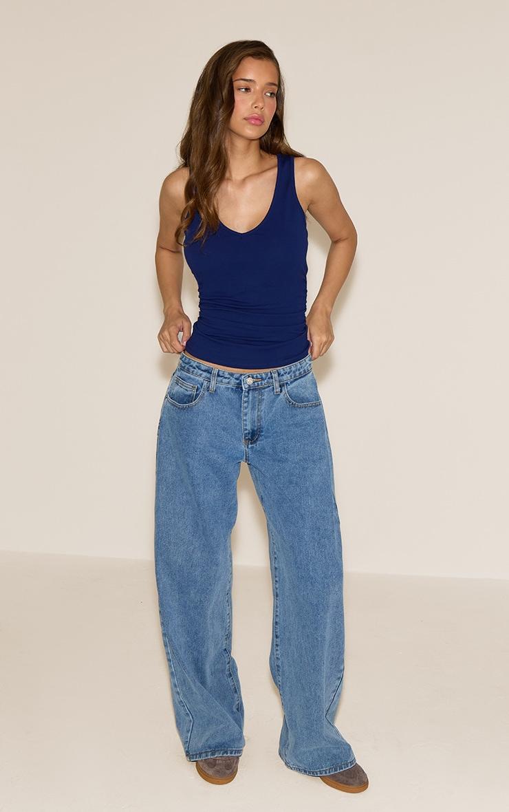 Refine your everyday foundations. Build your look around the indigo blue soft cotton v neck Vest top, designed with a flattering v neckline and clean sleeveless silhouette. This versatile piece is ready for anything; tuck it into wide-leg pants or style with relaxed jeans for a knowing, effortless daytime feel.Length approx 48.5cm/19inch (Based on sample size US 4)Model wears size UK 8/ EU 36/ AUS 8/ US 4Model Height - 5ft 8inchp]:!mb-4inch>Brand: PrettyLittleThingCategory: TopsProduct type: Vest TopColor: BlueMaterial: Cotton JerseyNeckline: V NeckSleeves: SleevelessOccasion: Day