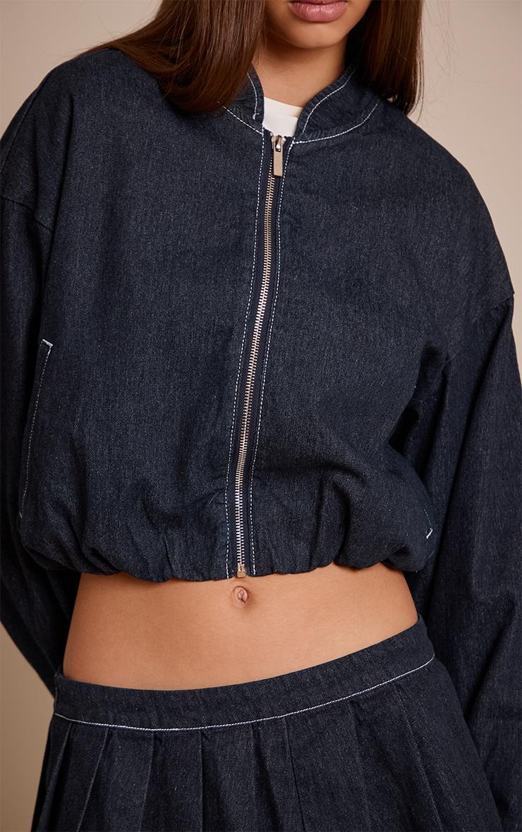 Inject discerning detail into your daily layers with this definitive denim piece. The indigo bubble hem cropped denim bomber jacket champions a relaxed yet artful cut, designed to define your waist with its distinctive bubble hem and an effortlessly chic cropped length. Its full zip fastening and collarless neckline maintain a sleek profile, while crisp white contrast stitching adds an unexpected dimension to the dark indigo. Wear this two piece set hero with the matching denim mini skirt for a cohesive day look that exudes confidence. Ground the ensemble with sleek court heels and introduce subtle detail with a stack of beaded bracelets, creating an ensemble that speaks to effortless self-assurance.Length approx 48.5cm/19inch (Based on sample size US 4)Model wears size UK 8/ EU 36/ AUS 8/ US 4Model Height - 5ft 7inchp]:!mb-4inch>Brand: PrettyLittleThingCategory: DenimProduct type: Cropped Denim JacketColor: IndigoMaterial: Rigid DenimDesign: PlainNeckline: ShirtSleeves: LongOccasion: Day