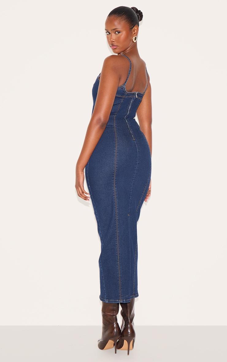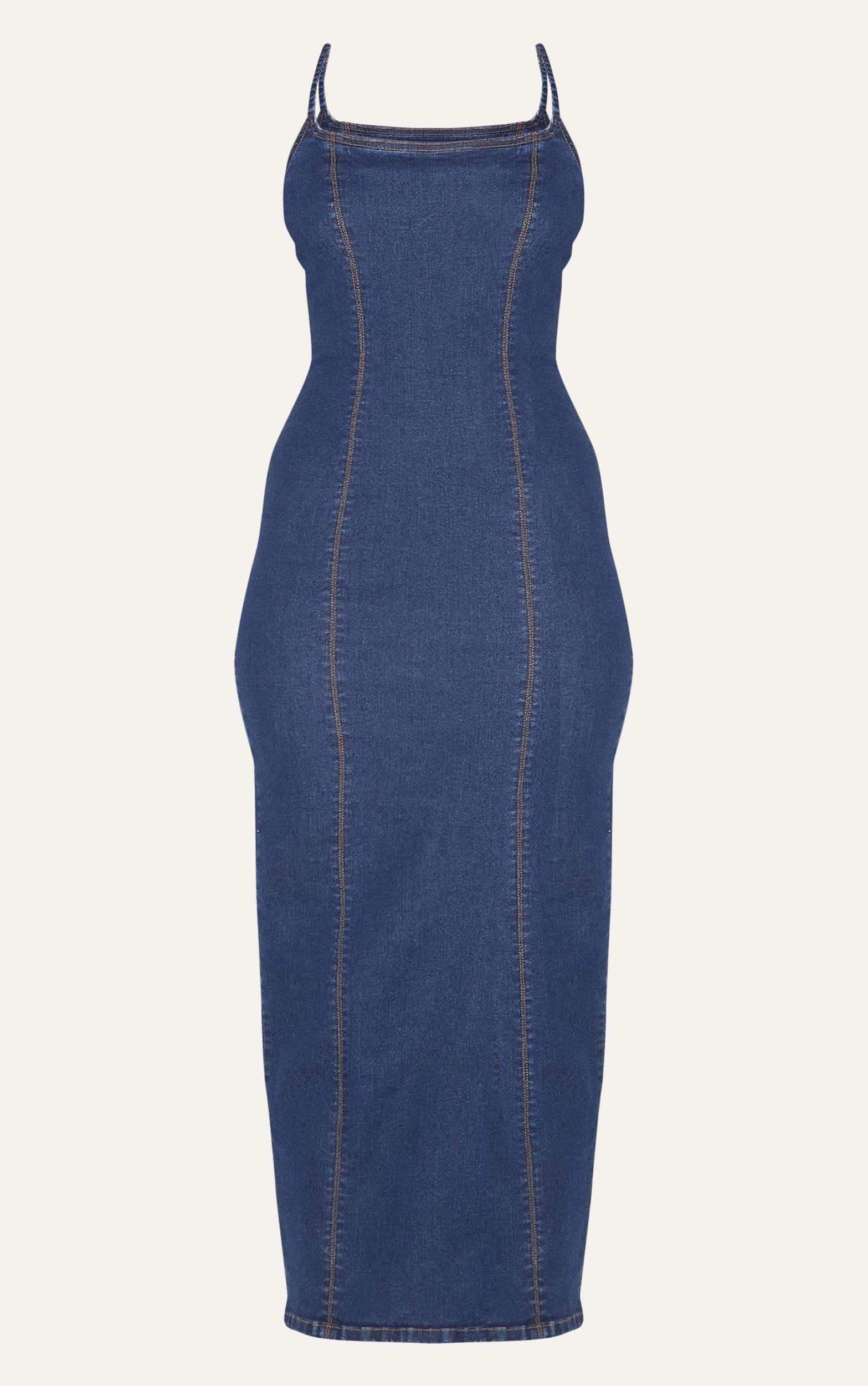 Crafted from indigo denim with elegant spaghetti straps, contrast stitching and a midaxi length fit. Pair this indigo cami strap denim midaxi dress with a statement pair of heeled boots and your go-to earrings for a look that's bound to turn heads.Length approx 119.5cm/47inch (Based on sample size US 4)Model wears size UK 8/ EU 36/ AUS 8/ US 4Model Height - 5ft 9inchp]:!mb-4inch>Brand: PrettyLittleThingCategory: DenimProduct type: Denim Evening DressColor: IndigoMaterial: Stretch DenimNeckline: ScoopOccasion: Evening