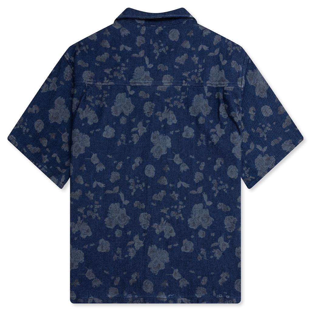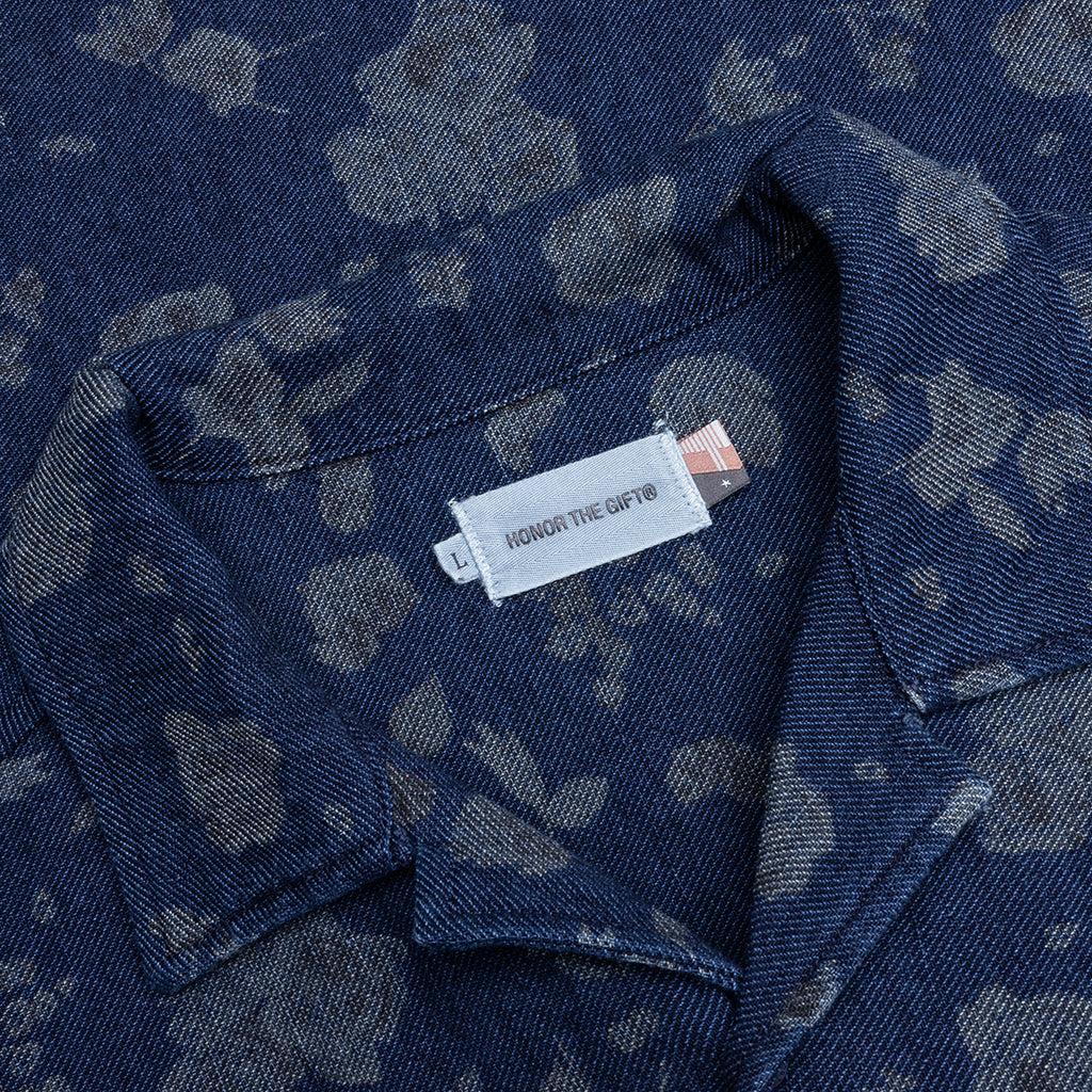 Introducing the Indigo Camp Shirt from Honor the Gift. Constructed from premium cotton denim, the piece is adorned with an allover floral print that adds subtle texture and visual interest. Featuring a camp collar, button front closure, and chest pocket for timeless styling. Embroidered on the pocket is an 'Honor' logo for recognizable branding. 100% Cotton Relaxed fit Allover floral print Camp collar Button up closure Chest pocket Embroidered 'Honor' on pocket Style No: HTG250331-BLU HTG250331 BLUE