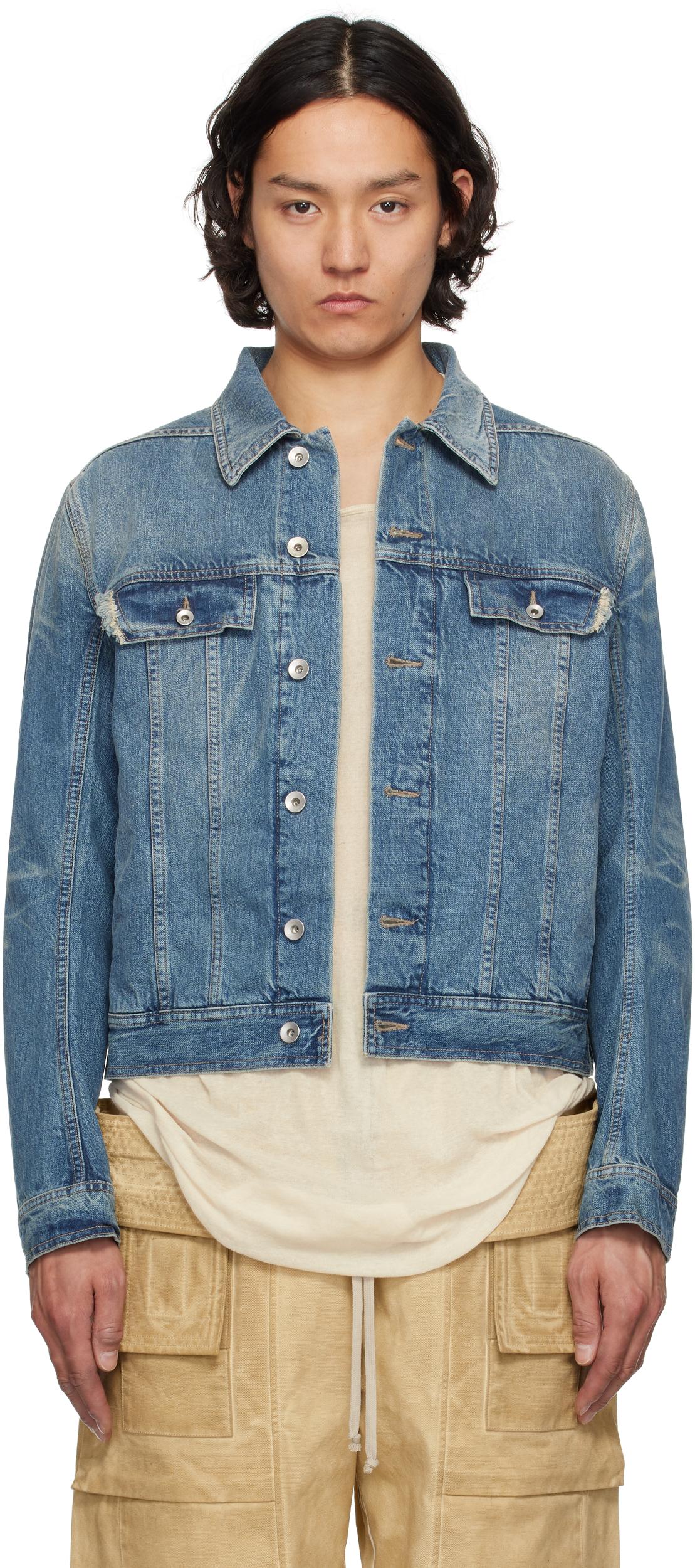 Washed 13 oz non-stretch selvedge denim jacket. Fading, distressing, and whiskering throughout.