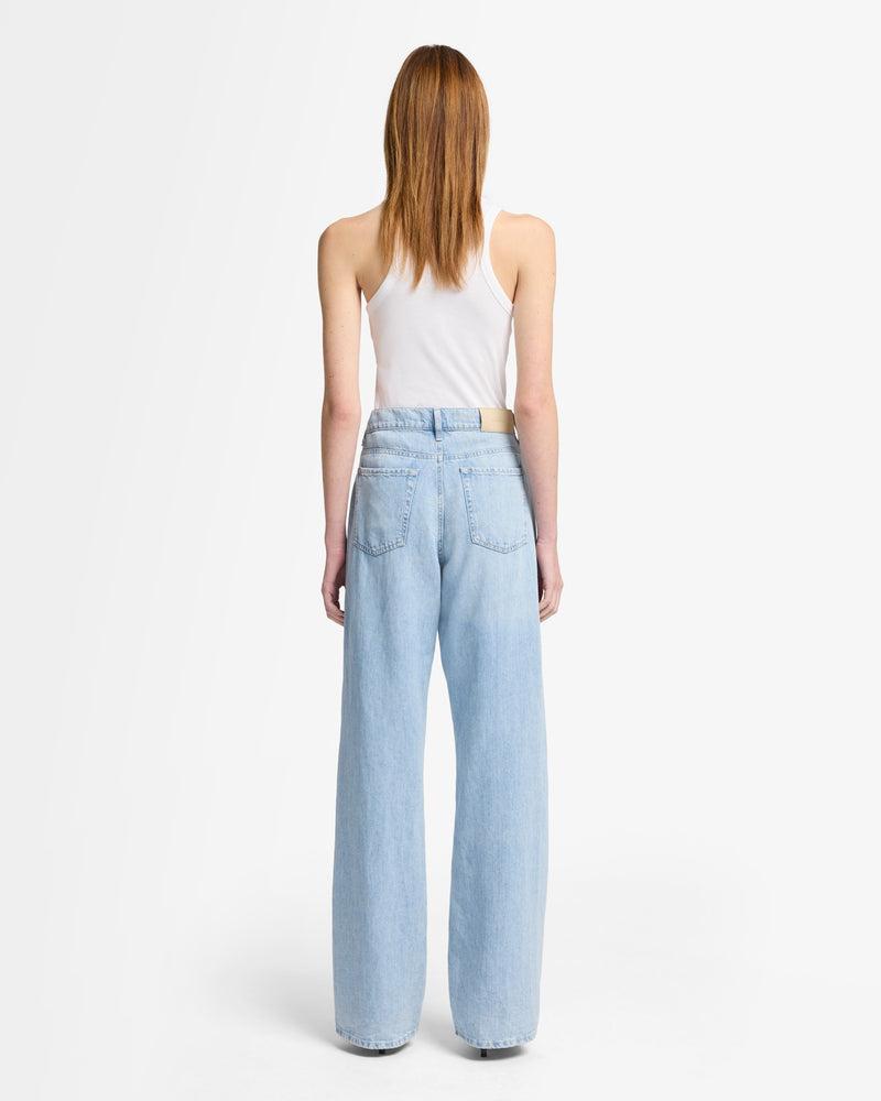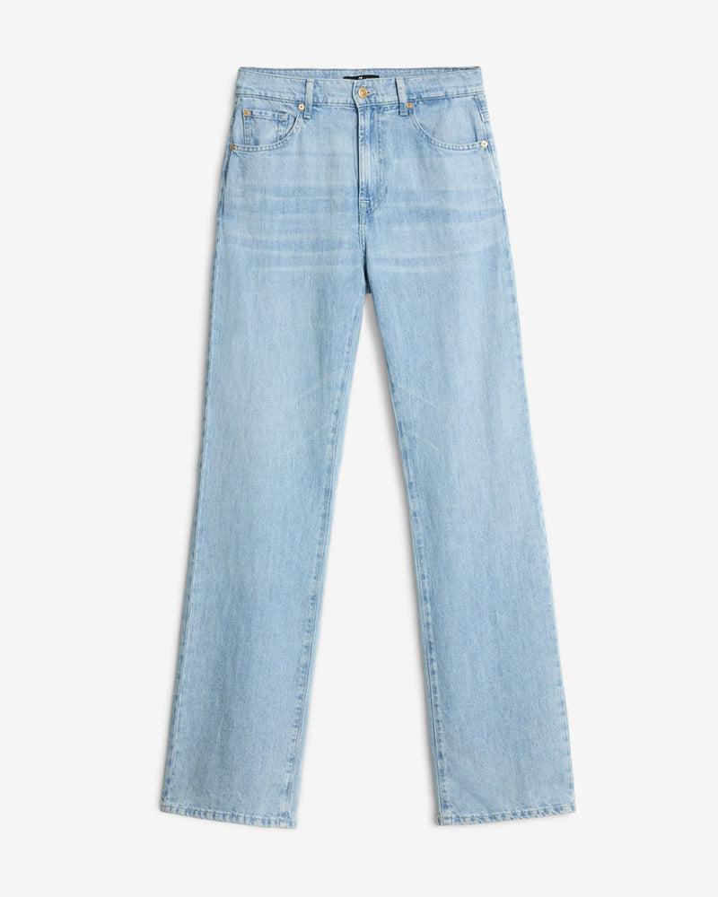 Fits like: A high-rise straight-leg fit with a full-length inseam that creates a streamlined silhouette. Feels like: A soft yet structured cotton-linen blend designed for breathability and comfort. The Details: Light indigo wash Subtle whiskering and fading across the thighs Button and zip closure Classic five-pocket d