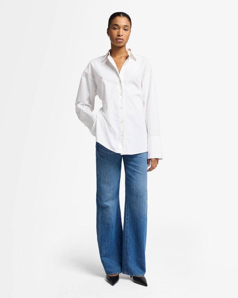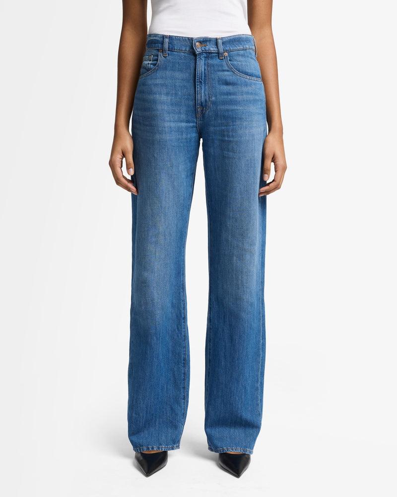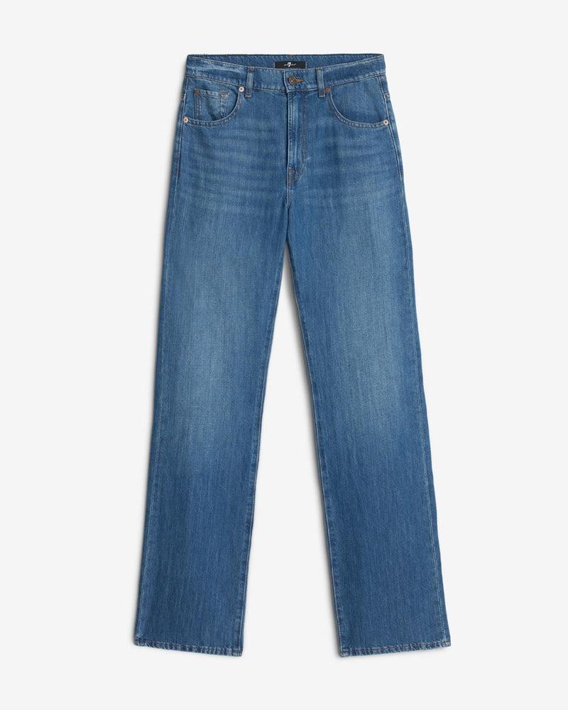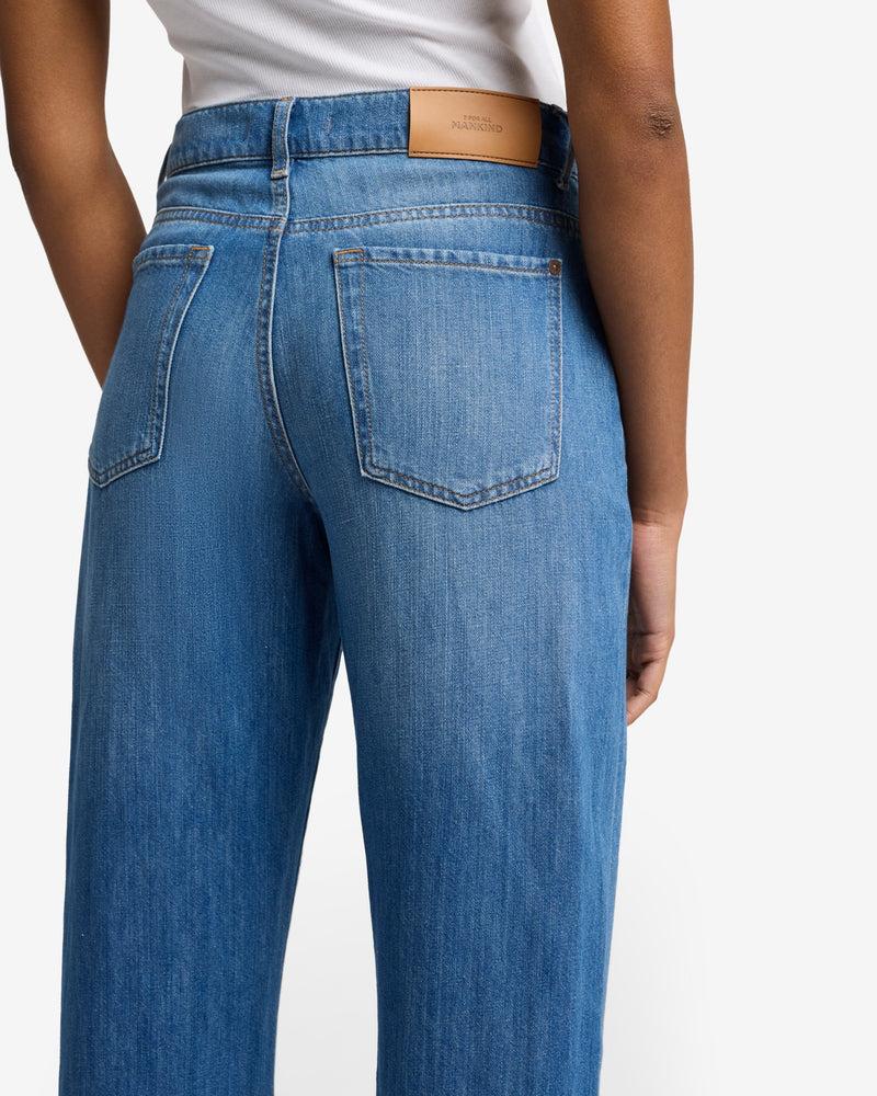 Fits like: A high-rise straight-leg trouser with a structured yet relaxed fit and full-length inseam. Feels like: A lightweight and breathable cotton-linen blend with a touch of texture for effortless style. The Details: Medium wash with subtle fading Button and zip closure Classic five-pocket design