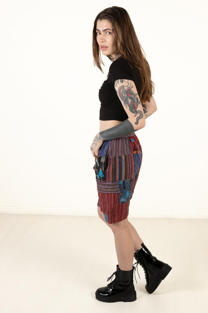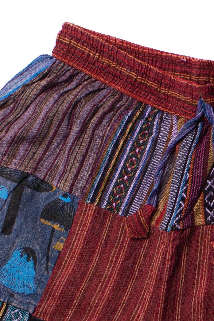 Each pair of shorts is handmade and pieced together from different patterns. No two pairs are alike! You will receive a unique item that will vary from the pants pictured here.- Product measurements taken laid flat.- Elastic drawstring waist- Inseam on all sizes 11"