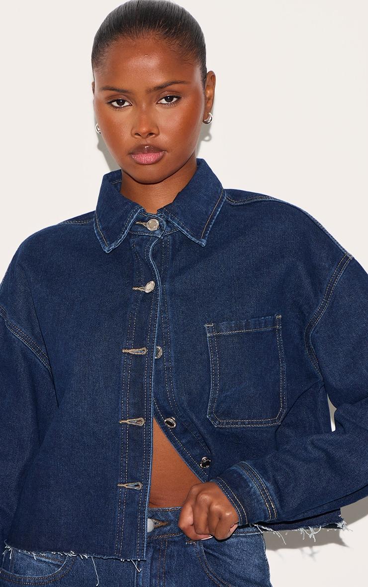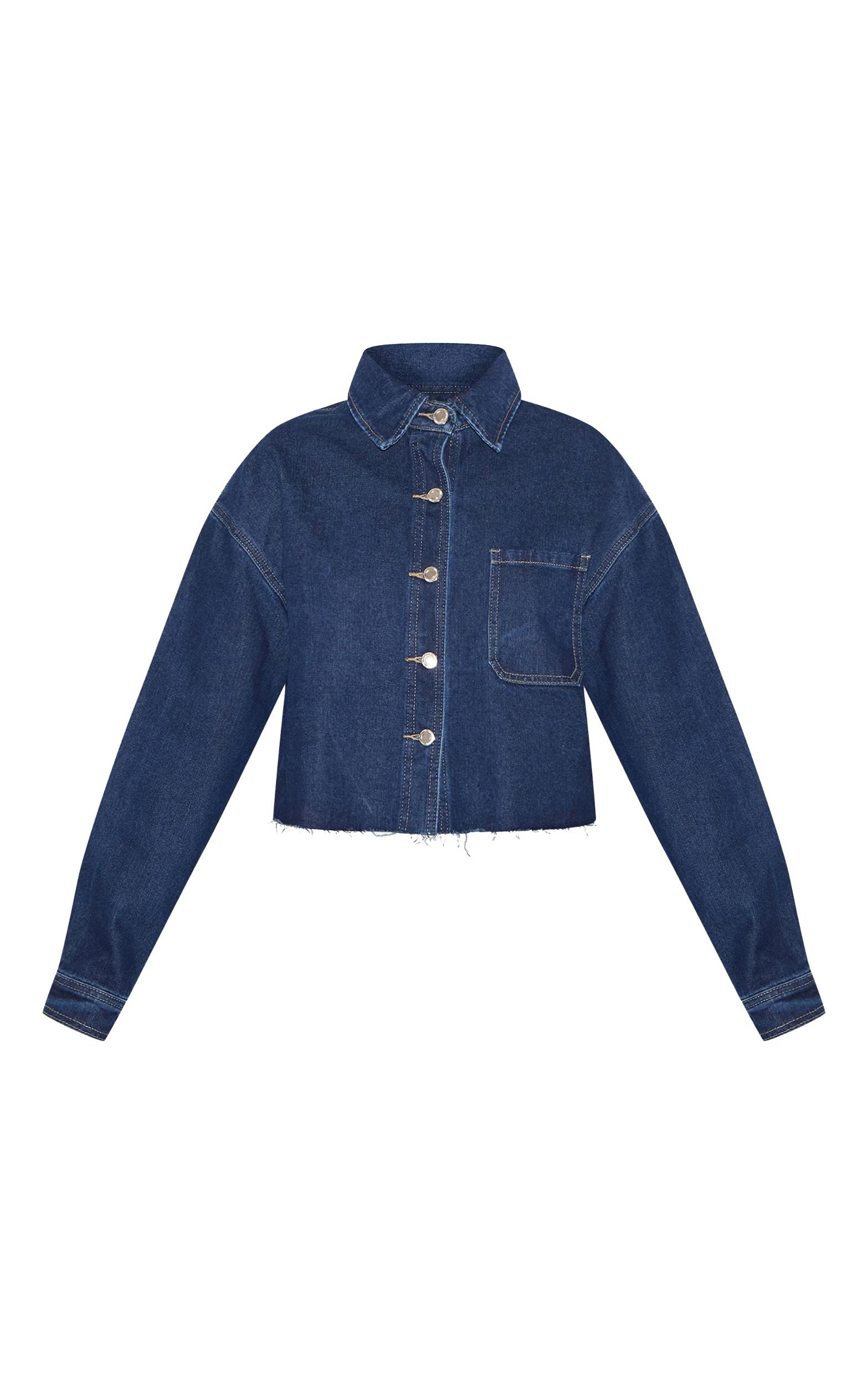 Made from an indigo denim material with a raw hem design and a flattering cropped length. Team this indigo raw hem cropped denim shirt with a pair of wide leg jeans and your go-to gold earrings for an edgy finish.Length approx 48.5cm/19inch (Based on sample size US 4)Model wears size UK 8/ EU 36/ AUS 8/ US 4Model Height - 5ft 9inchp]:!mb-4inch>Brand: PrettyLittleThingCategory: DenimProduct type: Denim ShirtColor: IndigoMaterial: Rigid DenimOccasion: Day