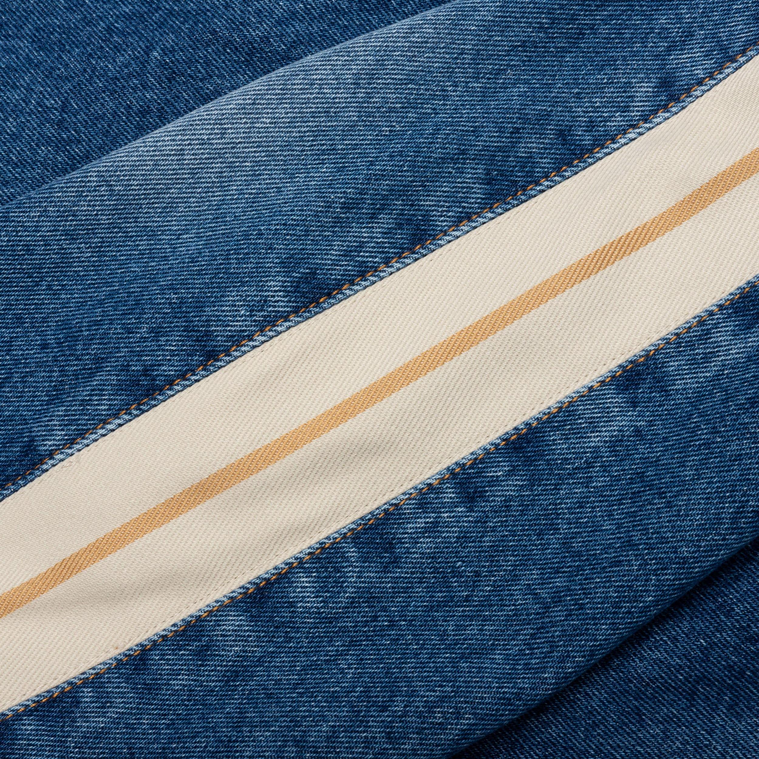 Elevate your denim rotation with the Palm Angels Indigo Track Denim Jacket. The design is cut from cotton and spotlights a button-down closure paired with a pointed collar. Barrel cuffs are seen, while the chest pockets feature a functional touch. In-seam side pockets are also seen, while the leather patch at the rear wraps up the look. 100% cotton Button-down closure Spread collar Barrel cuffs Side pockets Chest pockets Style No: PMYE029C99DEN0014001