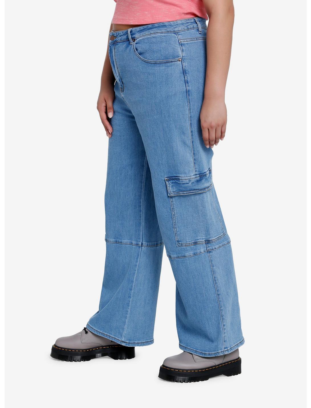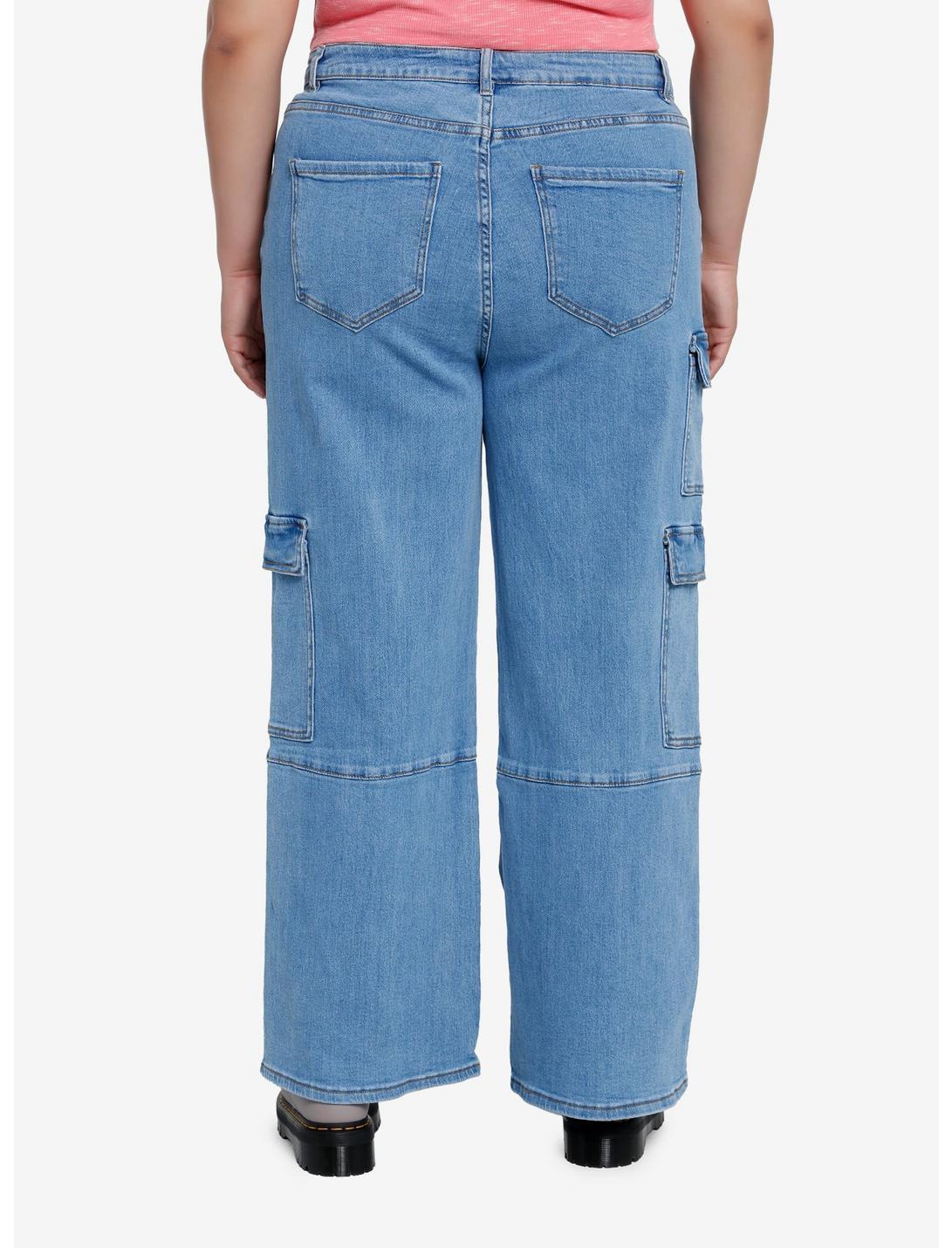 Indigo Wide Leg Cargo Denim Pants Plus Size