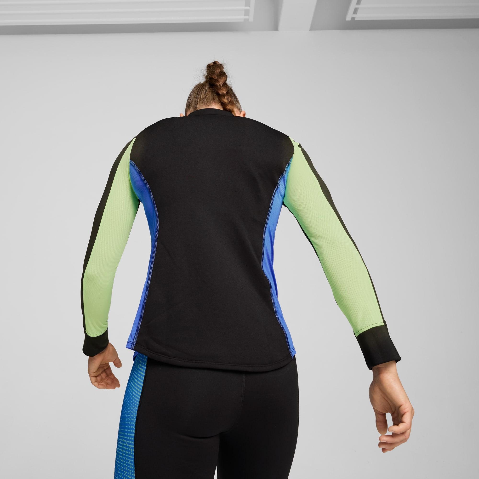 descriptionBlast into your training session with the individualBLAZE Quarter-Zip Top. Strategically placed mesh vents and thumbholes ramp up breathability and comfort so you can push harder on the pitch. Take the game by storm.Style: 659559_02Color: PUMA Black-Fizzy Applemeasure & sizeModel informationModel is 5' 9" tall and is wearing size S.features & benefitsdryCELL: Performance technology designed to wick moisture from the body and keep you free of sweat during exercisedetailsRegular fit260 gsm, French TerryMock neckThumbholesHalf-zip closurematerials & careMaterial informationBack Body: 100% polyesterShell: 100% polyesterCare instructionsUse detergent for coloursWash garment inside outClose all fasteningsExclusive of DecorationDo not iron print