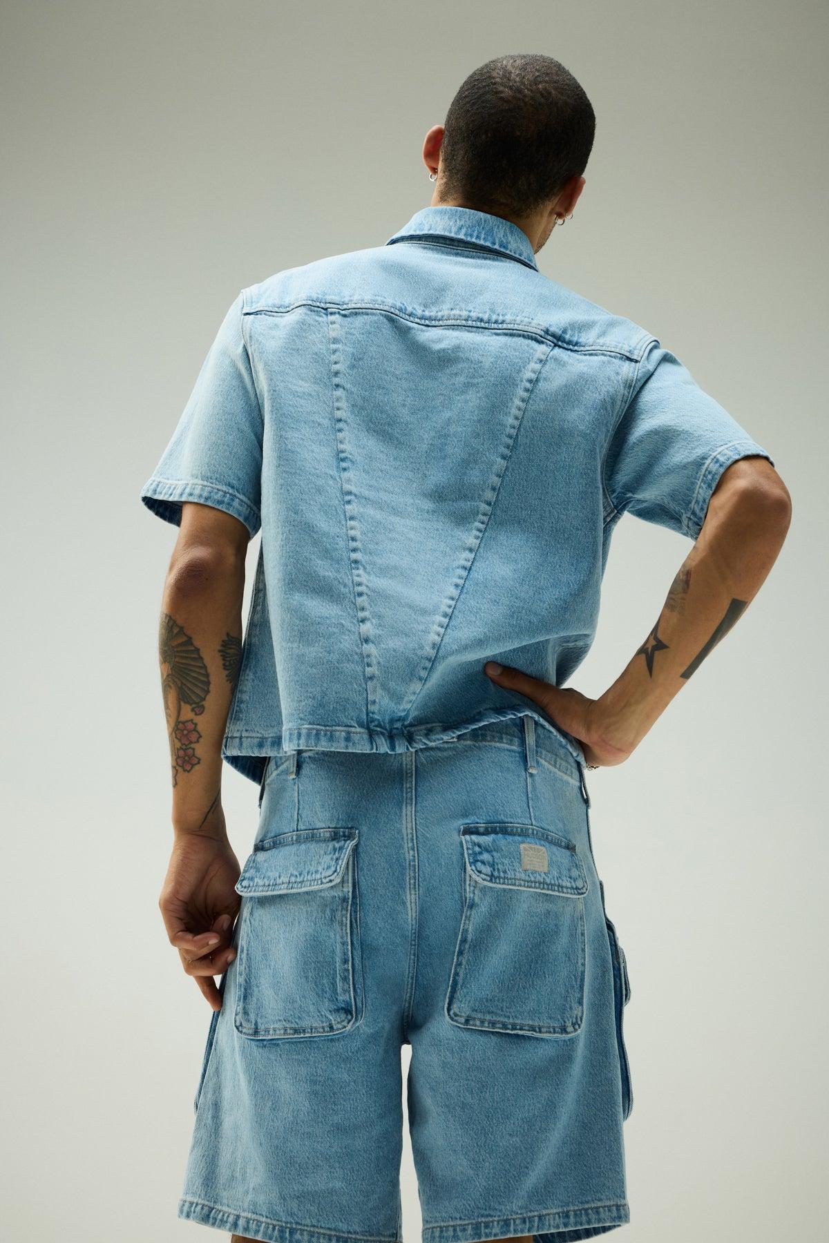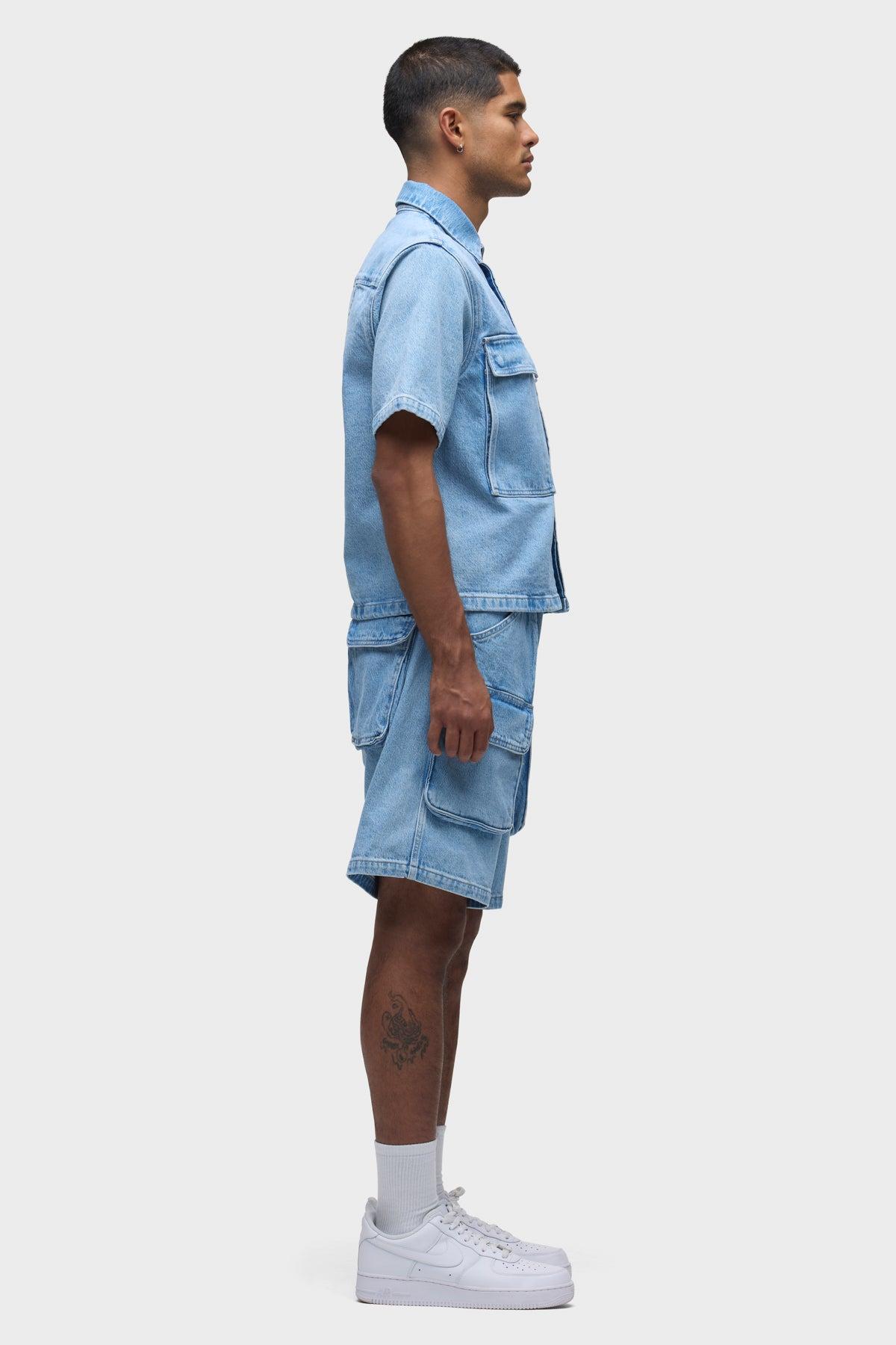 Description The Industry Cargo Short in Hazy features a relaxed fit with utility cargo pockets for a laid-back, effortlessly cool look and feel. This pair is cut from premium comfort stretch denim in a light indigo wash with heavy stone washing and bleaching. Product Details Front Rise: 11.5", Leg Opening: 25", Inseam: 9"Model Height 6’1"Model wearing size 32Measurements based on size 32 Fit & Care Content: 97% Cotton, 2% Elasterell, 1% ElastaneMachine wash cold with like colorsDo not bleachTumble dry low or hang to dry