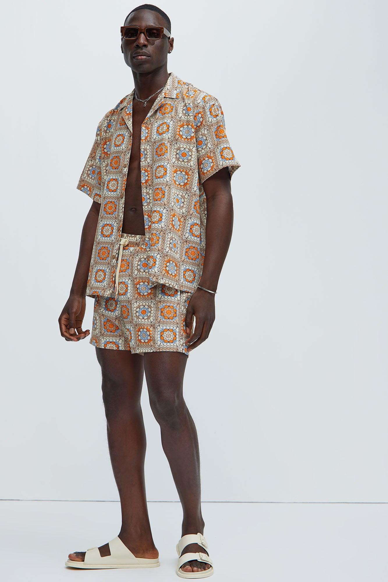 Available In Natural/Combo. 6" Inseam Elastic Waist Drawstring Side Hand Pockets Back Pocket Pair With Indy Crochet Print Shirt Shell: 92% Nylon, 8% Spandex Lining: 100% Nylon Disclaimer: Print Placement May Vary Final Sale Imported California Proposition 65WARNING: Cancer and Reproductive Harm - www.P65Warnings.ca.gov.