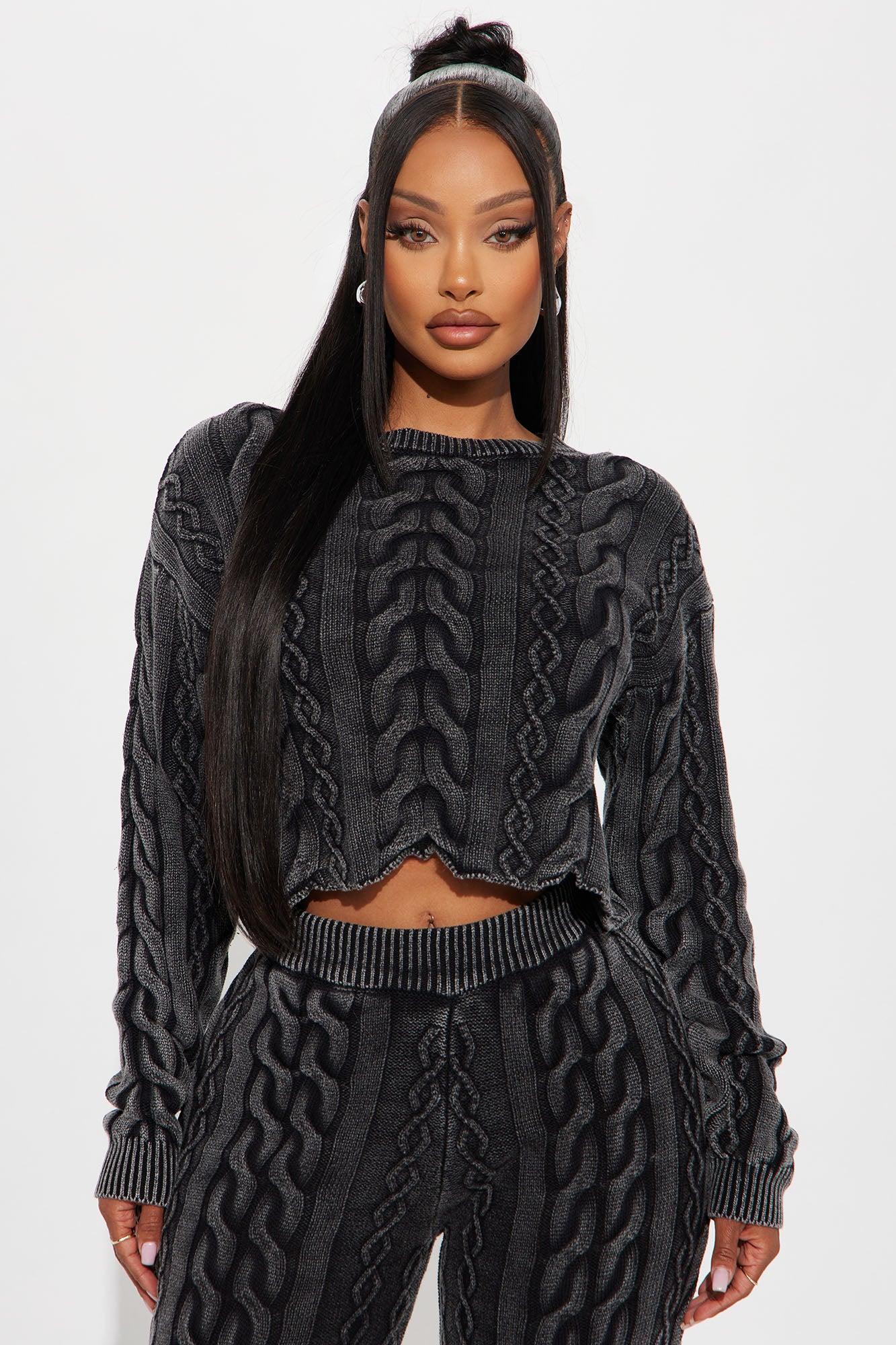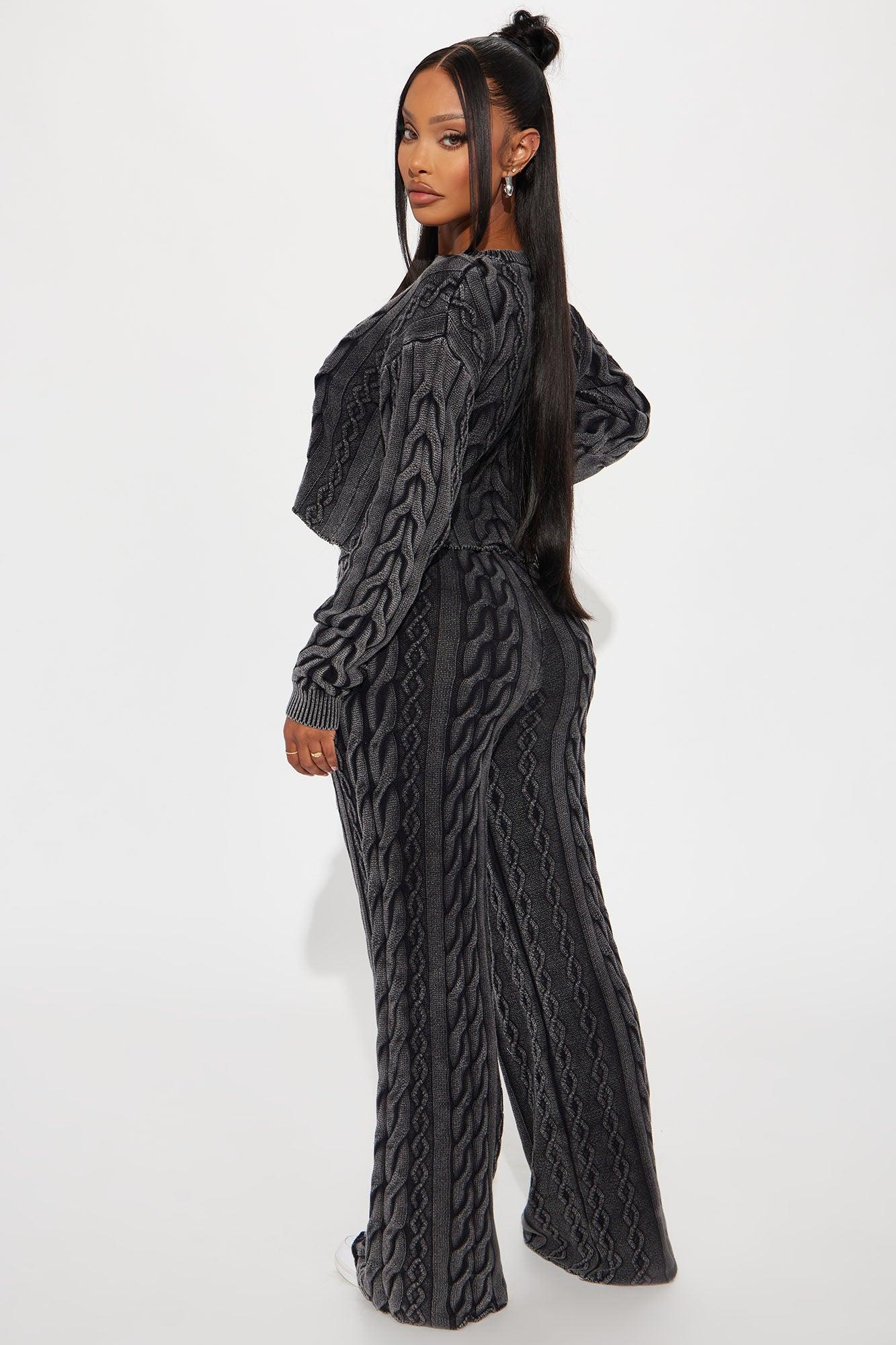 Available In Charcoal. Mineral Wash Sweater Pant Set Long Sleeve Top Round Neck Wide Leg Pant Elastic Waistband Stretch Inseam: 32" SELF: 100% Cotton Imported California Proposition 65WARNING: Cancer and Reproductive Harm - www.P65Warnings.ca.gov.