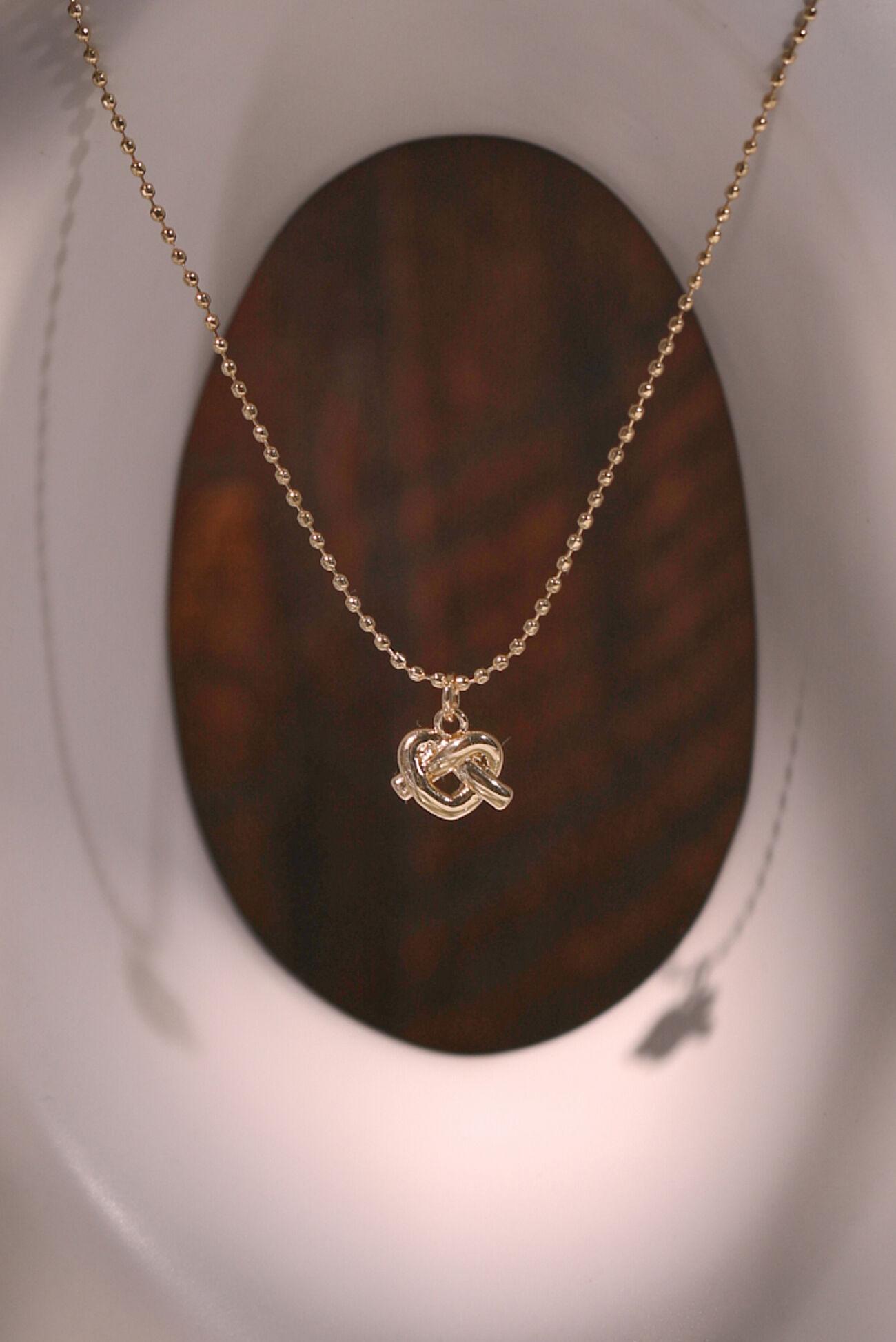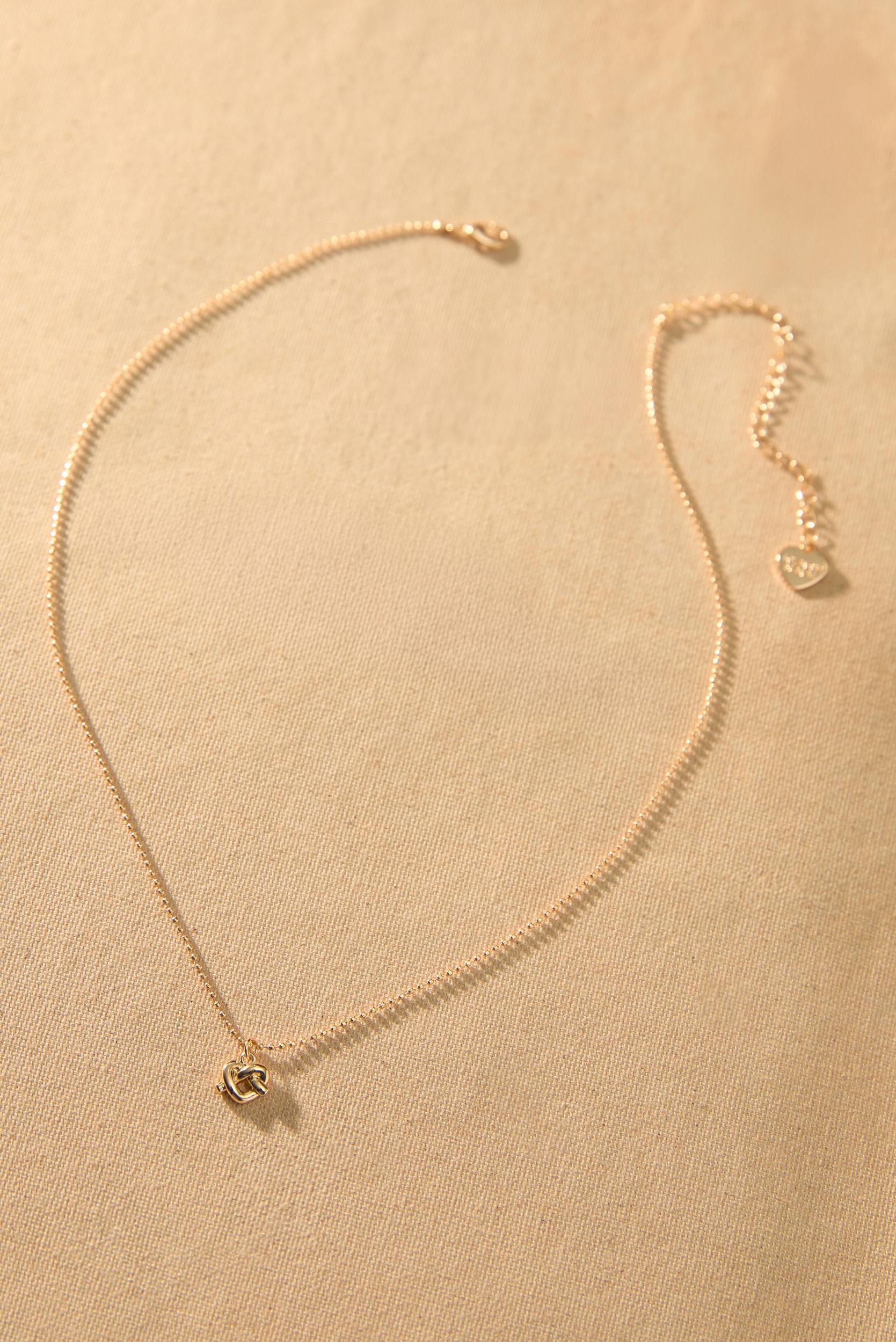 Whether for a special occasion or everyday wear, this necklace adds a meaningful touch to your collection. The intricately twisted knot charm hangs delicately on a fine chain, representing the beauty of connection and the elegance of simplicity.