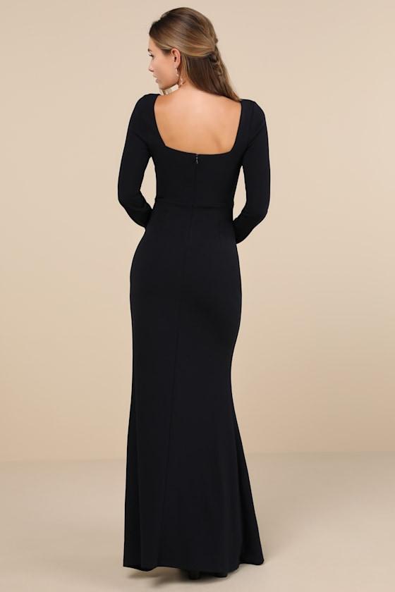There's no end to how beautiful you look in the Lulus Infinitely Elegant Midnight Blue Long Sleeve Maxi Dress! This effortless dress has a stretchy techno crepe knit composition that shapes a flattering square neckline, a seamed bodice, and long sleeves. High, fitted waist sits atop a mermaid-style skirt that falls to a sweeping maxi hem with an alluring side slit. Hidden back zipper/clasp.