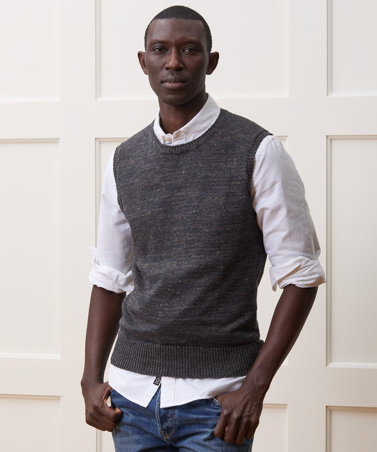 A versatile layer, this sweater vest is knit from Irish linen. The crewneck collar is a chic spin on the more classic v-neck; the entire piece is hand-finished and features ribbing at the trim. This looks excellent worn all on its own, open over a tee or Oxford, or buttoned-up and layered under a sport coat in a twist on the classic 3-piece suit. It’s made by the experts at Inis Meáin Knitting Company. Founded in 1976, Inis Meáin’s garments are made using the centuries-old techniques of the Aran island it's named after. The family-owned factory specializes in small, impeccably hand-finished runs of authentic, heritage sweaters inspired by traditional workwear. 100% Linen Classic Fit Handfinished Ribbed Trim Made in Ireland at Inis Meáin Hand wash in water 30 degrees or less using a mild detergent. Lay on a flat surface to dry. Style S2513