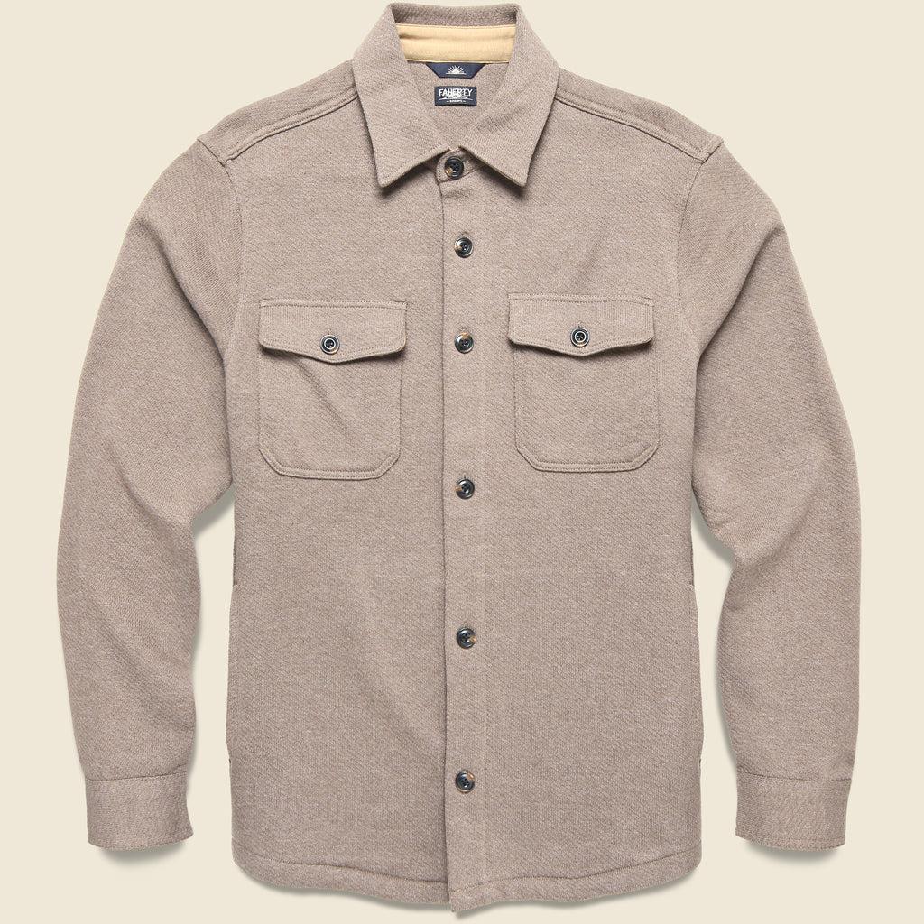 This Shirt Jacket from Faherty is made from their proprietary Inlet Knit fabric that’s incredibly soft and made to last. It’s tailored with a perfectly relaxed fit to easily layer over a flannel or thermal and finished with a pair of chest pockets, two on-seam handwarmer pockets, and a recycled horn button placket for a classic finish.