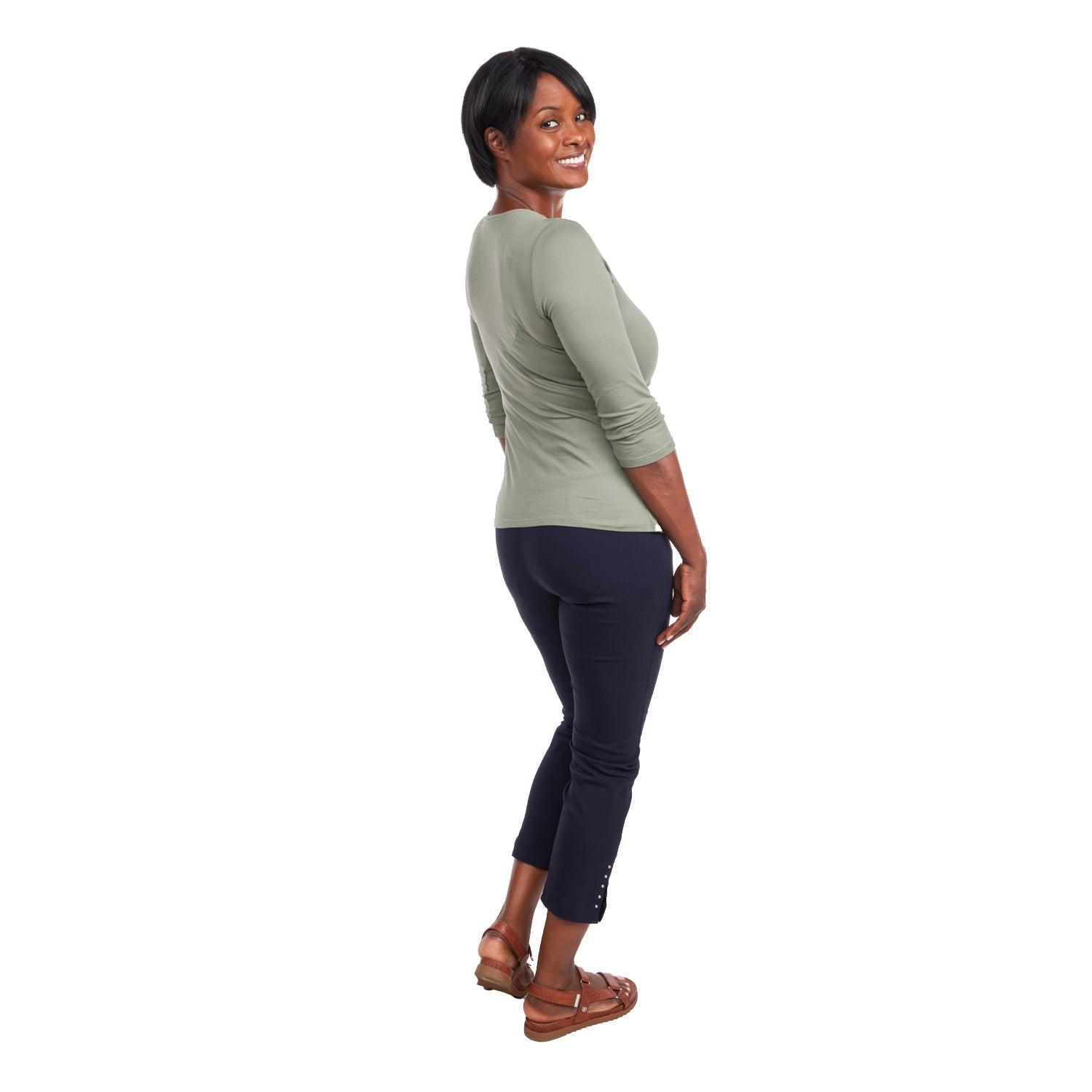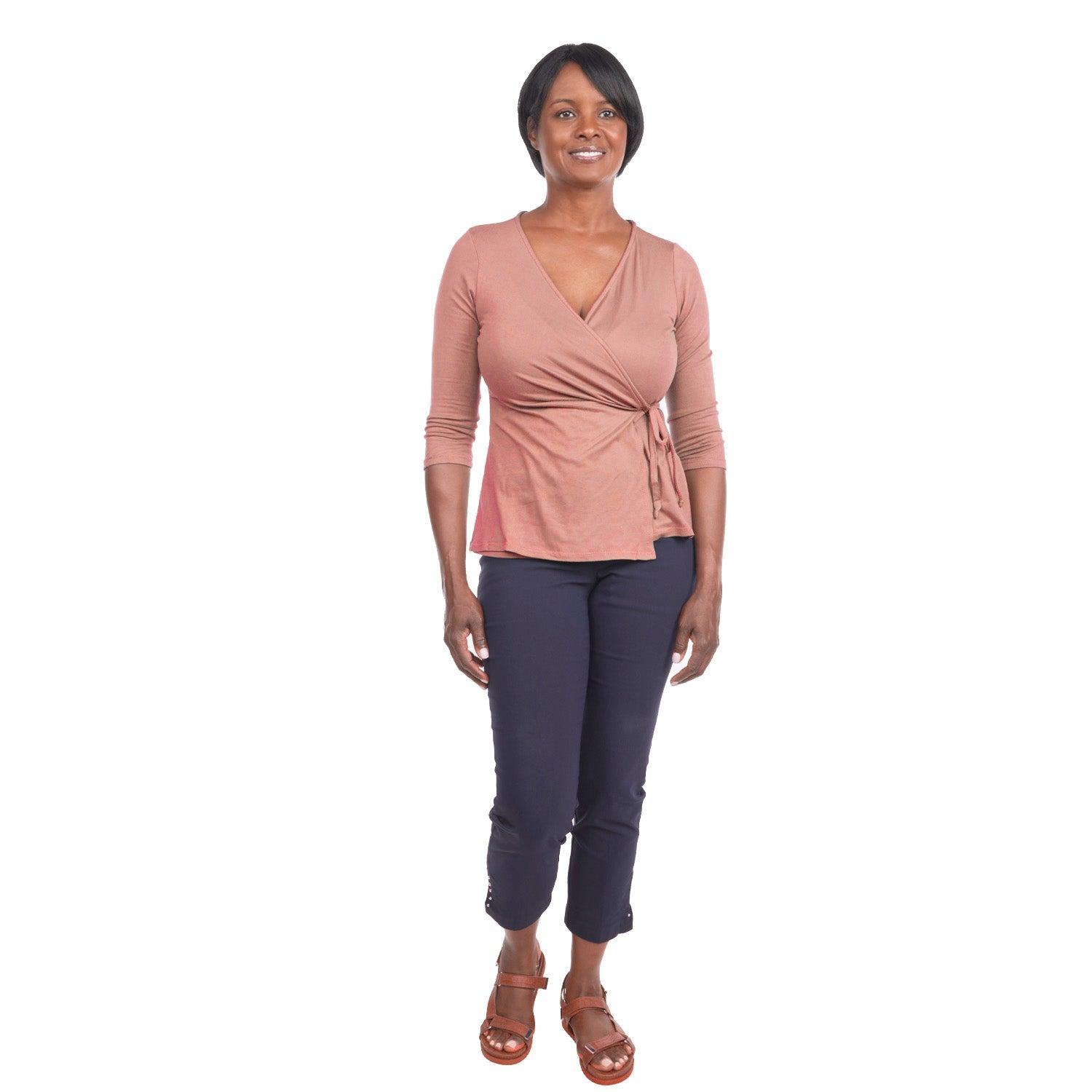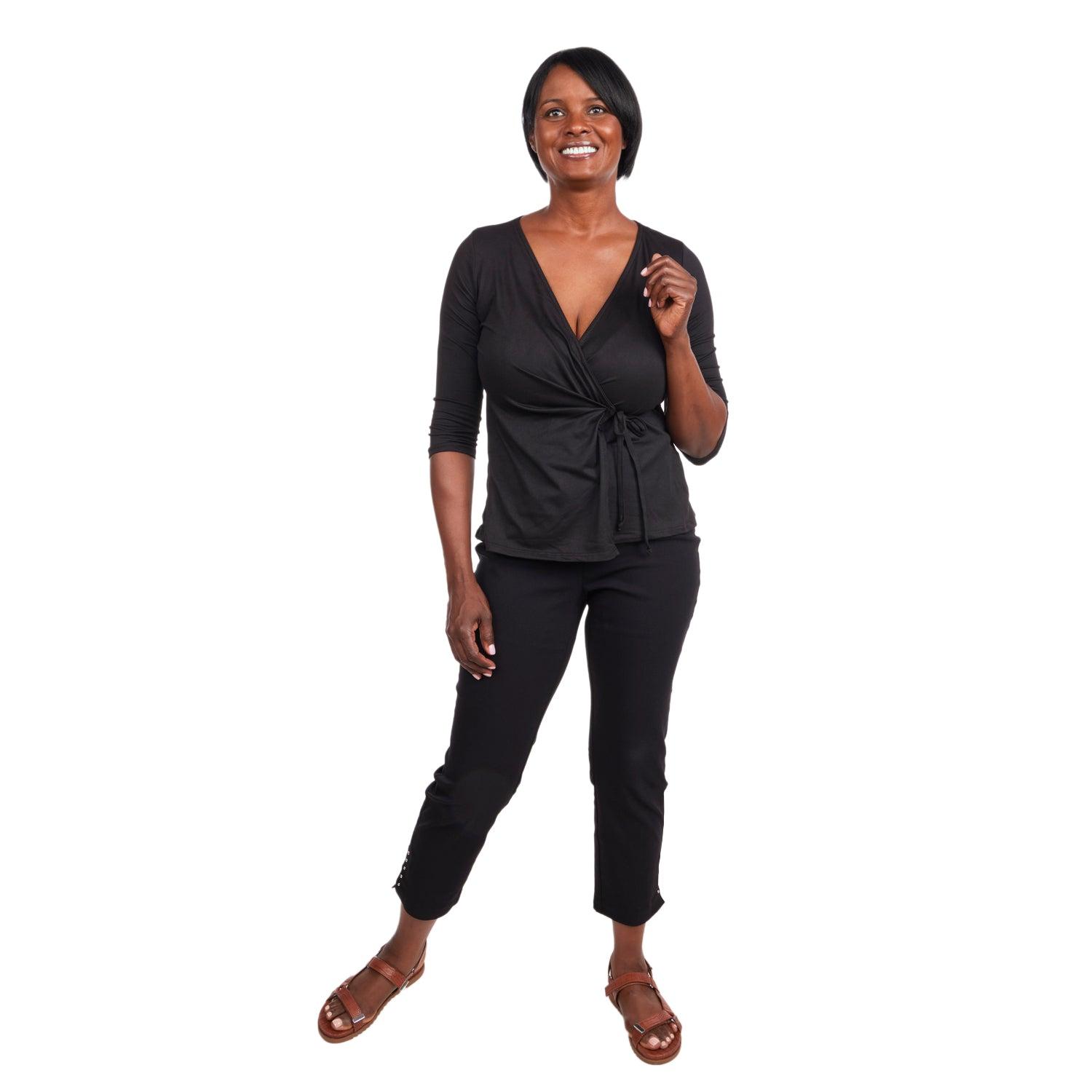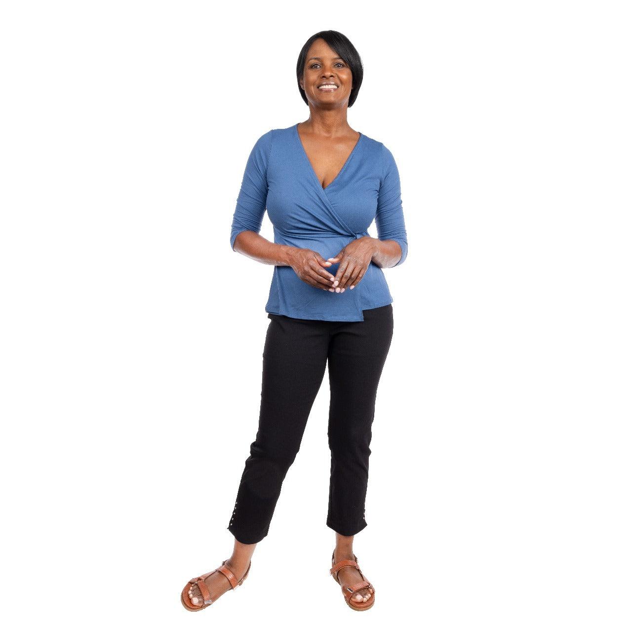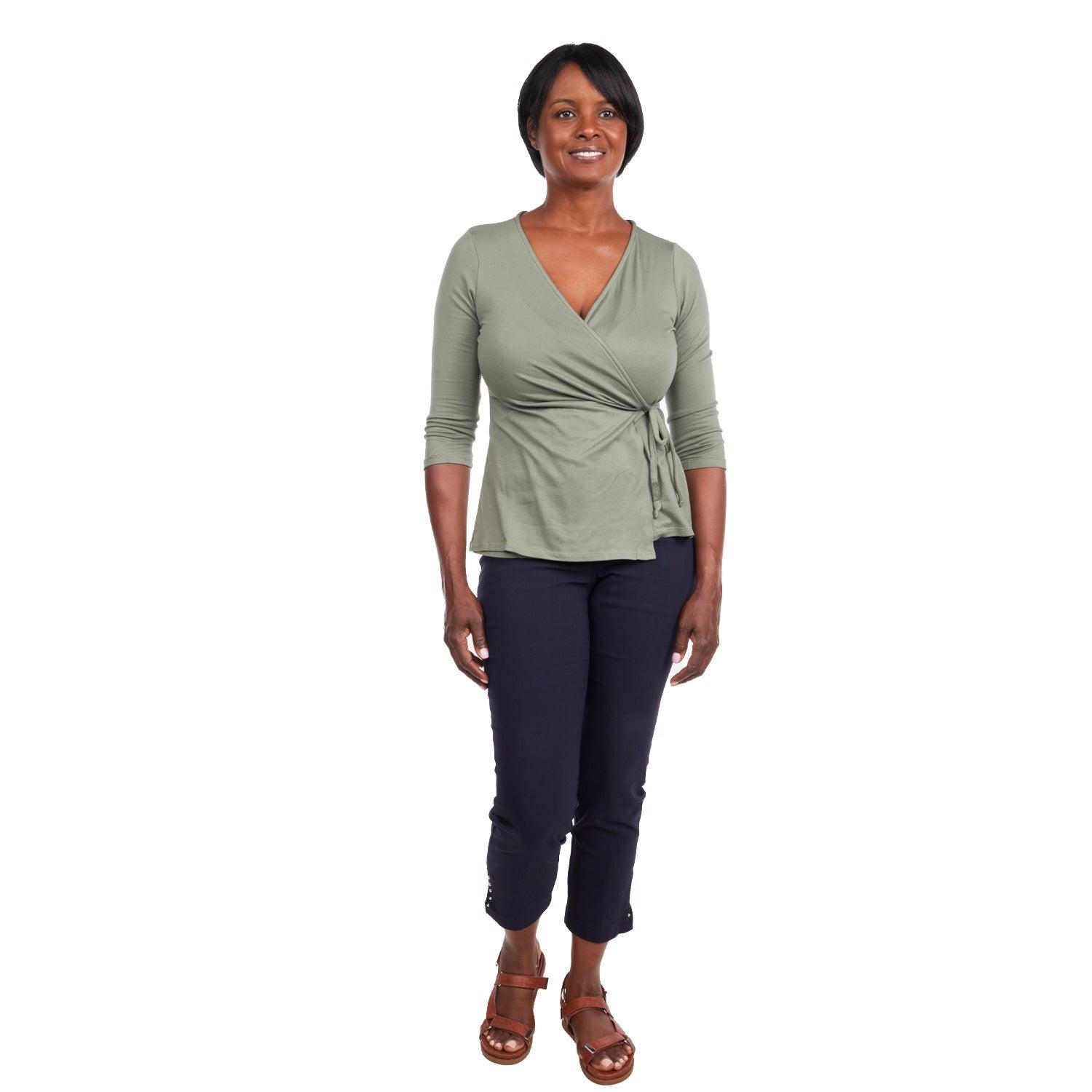 Inner Beauty Solid 3/4 Sleeve Surplice Front V-Neck Top