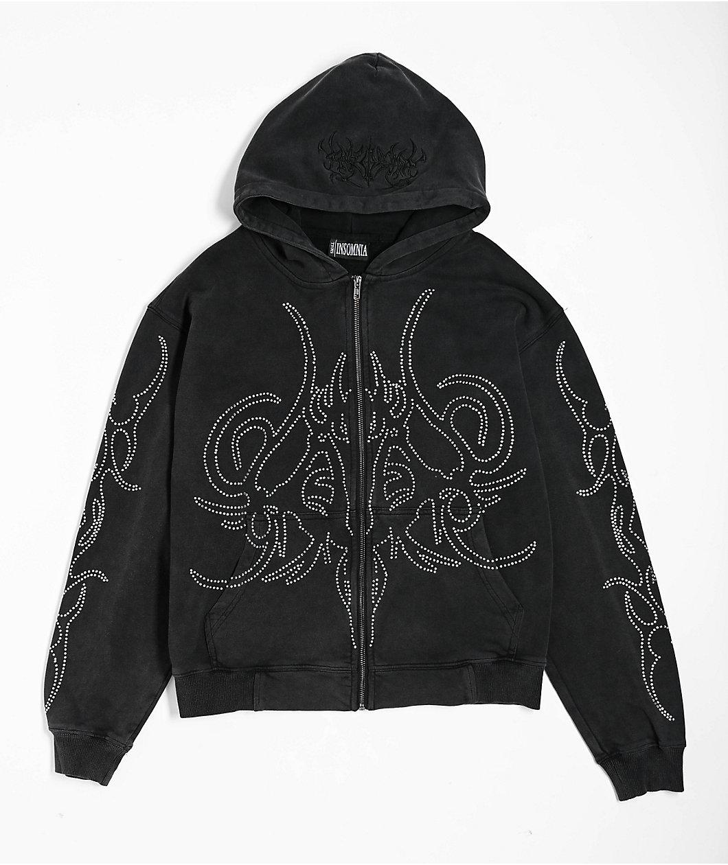 Insomnia Visuals Sigil Rhinestone Black Zip Hoodie