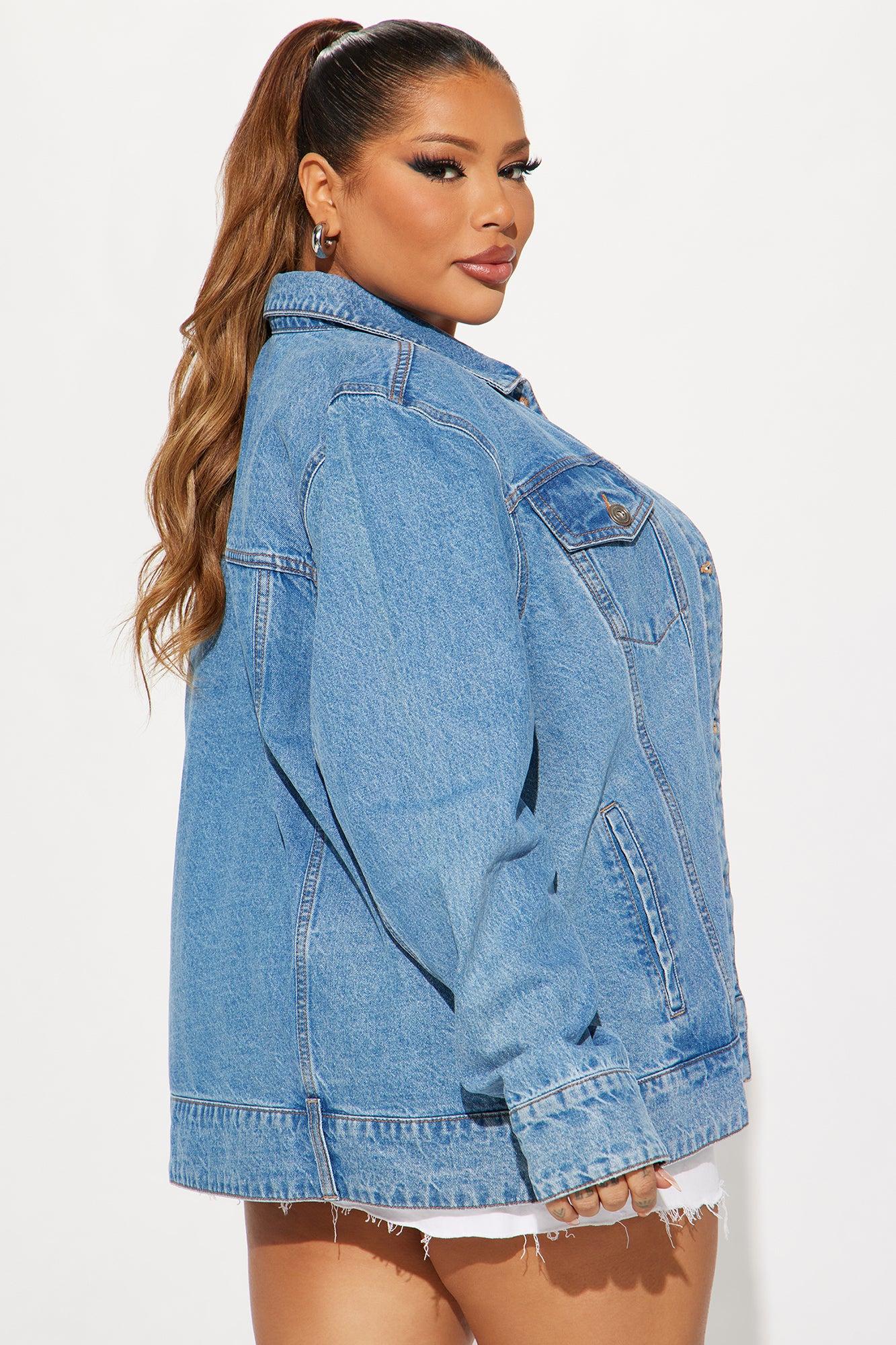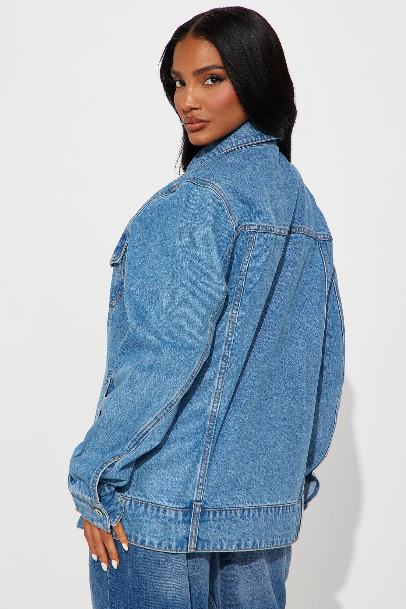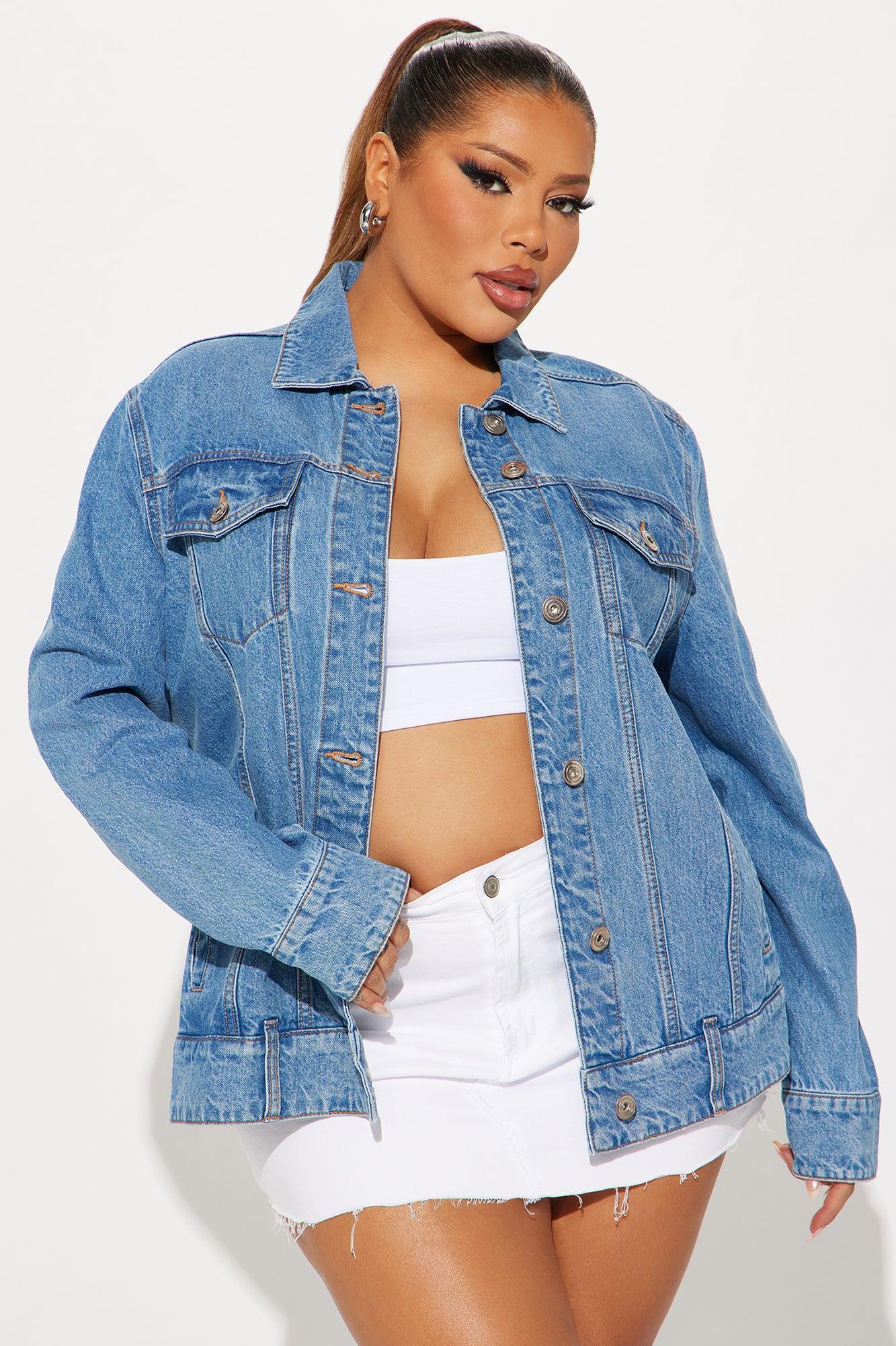 Available In Medium Wash. Denim Trucker Jacket Collared Pockets Button Closure Disclaimer: Due To The Specialized Wash Process, Each Garment Is Unique. Non Stretch, 100% Cotton Imported California Proposition 65WARNING: Cancer and Reproductive Harm - www.P65Warnings.ca.gov.