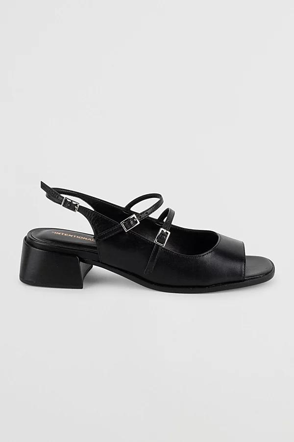 Monochromatic, in rich leathers from Brazil, this low slung sandal is perfect for all your warm weather outings. We love the combo of the small straps with the oversized upper and peep toe. The slow slanted heel provides maximal comfort and all day comfort. Contents + Care Upper Material: leather Lining: leather Spot clean with damp cloth. Imported Size + Fit Heel Height: 1.625 Take your normal size Intentionally Blank Peaches Slingback Heel in Cherry, Womens at Urban Outfitters