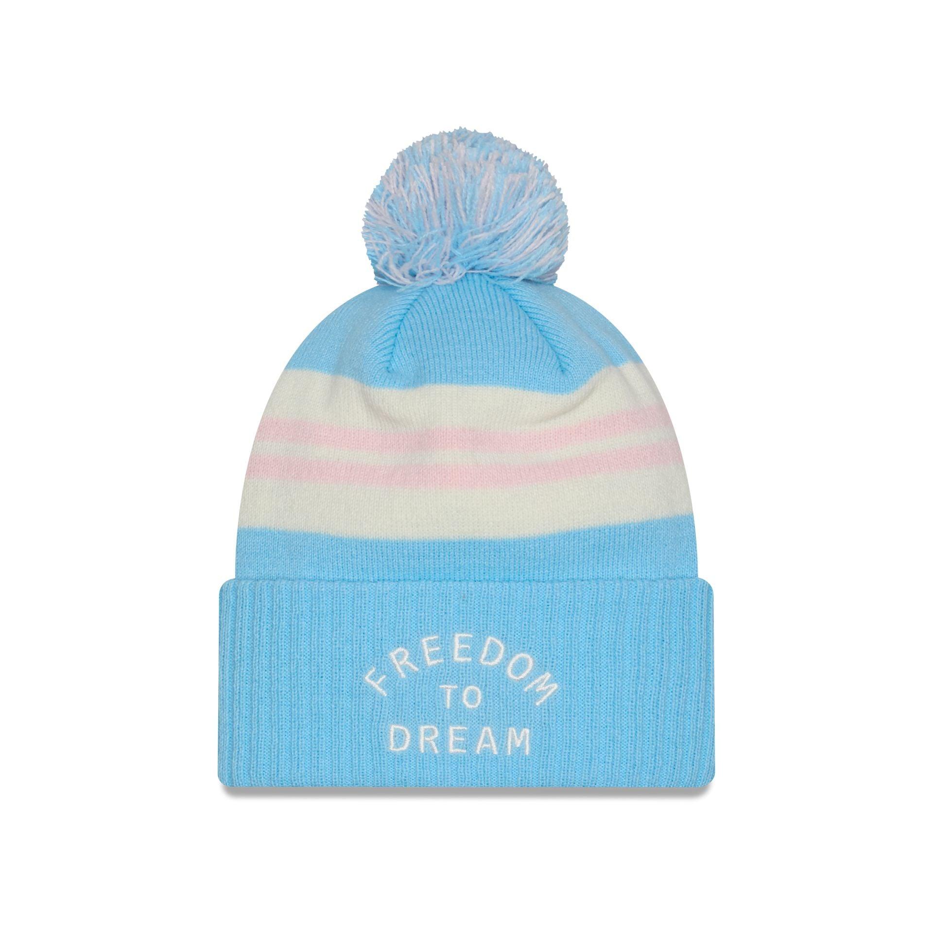 The Inter Miami 2025 Jersey Hook Light Blue Pom Knit Hat features an embroidered Inter Miami logo at the front cuff with a "Freedom to Dream" wordmark at the rear and a one-time removeable pom.