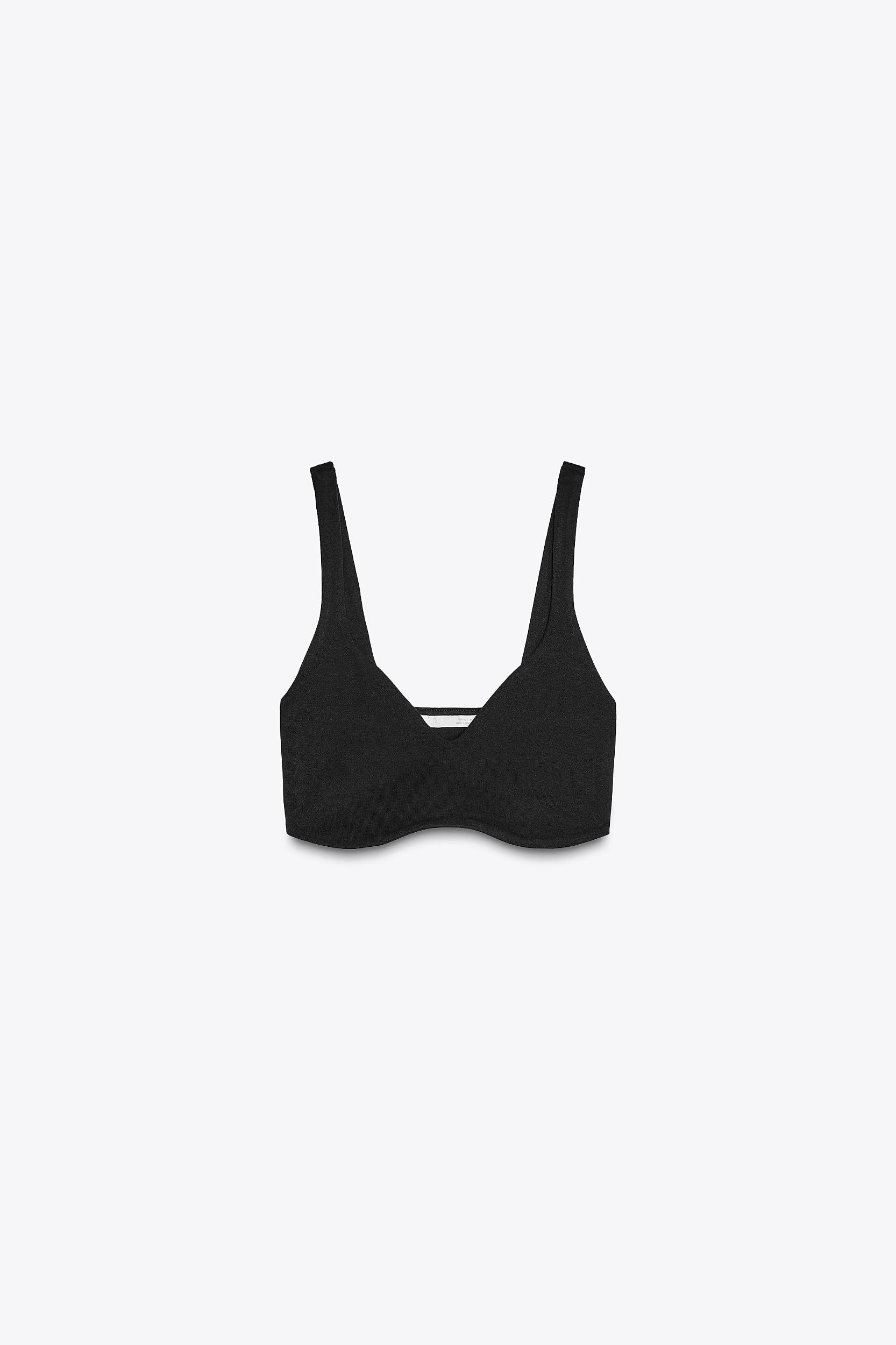 Crop top made of elastic and flexible knit fabric with a compact, soft, and opaque weave. Sweetheart neckline and straps.