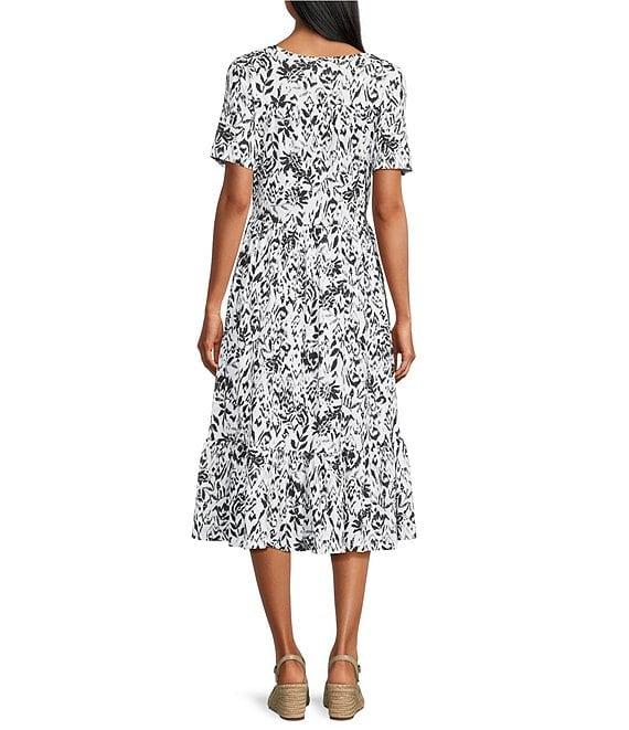 From Intro, this dress features: Cotton slub jersey fabrication A-line silhouette Scoop neckline Short sleeves Side seam pockets Tiered hem Pullover construction Approx. 44.375" from high point shoulder Cotton Wash inside out machine wash/dry flat Imported.