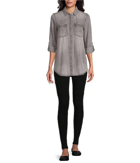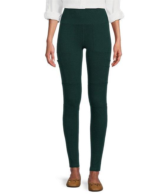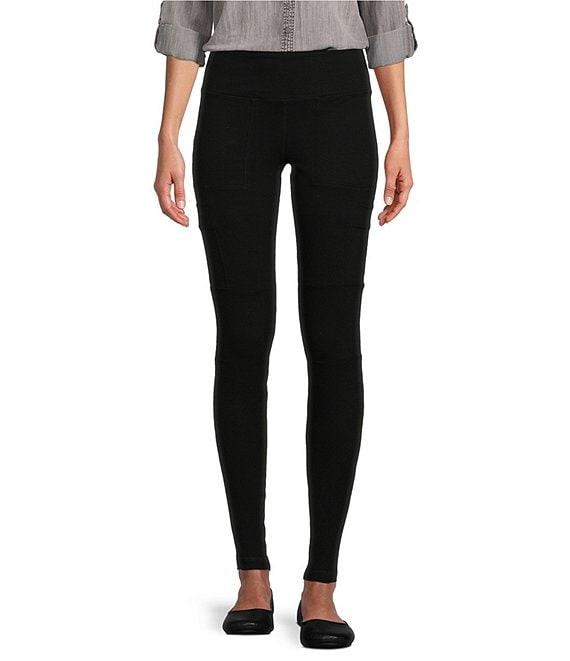 From Intro, this legging features:Knit fabricationWide waistbandStraight legTummy control waistPatch pockets, cargo pockets at legsPull-on constructionApprox. 27.5" inseamShell: cotton/spandex; inner panel: spandexMachine wash/tumble dry Imported.