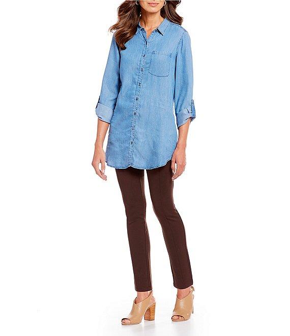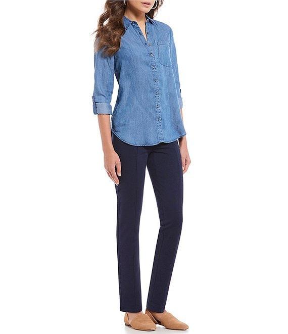 Intro Petite Size Bella Solid Double Knit Slim Her Straight Leg Pants