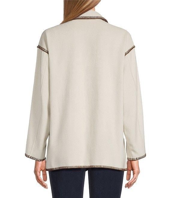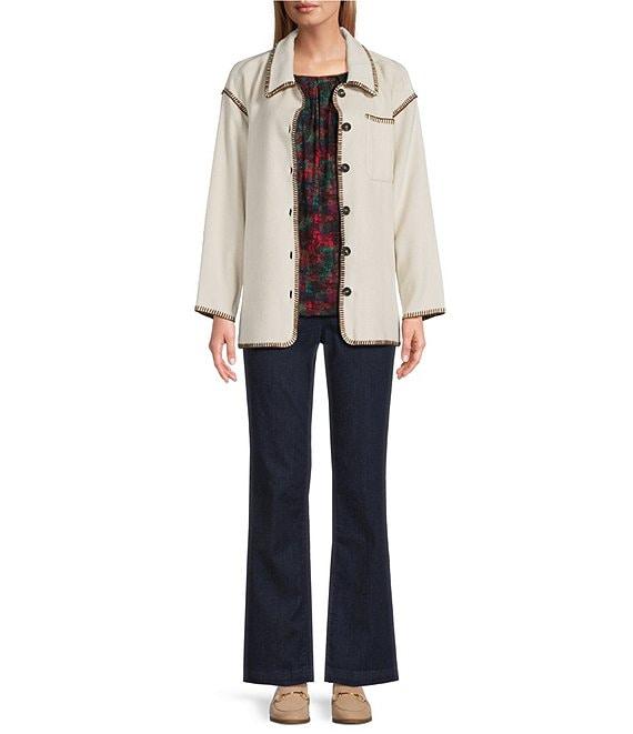 Intro Petite Size Embroidered Whipstitch Point Collar Long Sleeve Button Front Shirt Jacket