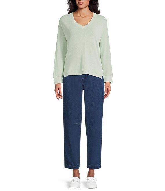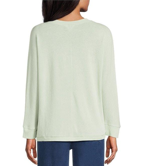 From Intro Petite, this sweater features: Lightweight washed knit sweater fabrication V-neckline 3/4 cuff sleeves Distressed wash look Straight hem with side vents Pullover construction Approx. 23.5" length Cotton/polyester Machine wash/dry flat Imported.