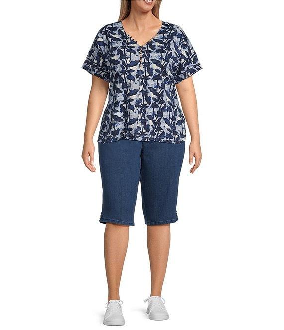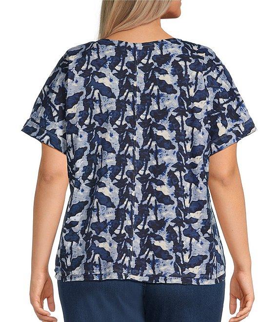 Intro Plus Size Cotton Slub Jersey Abstract Print V-Neck Short Sleeve Tee