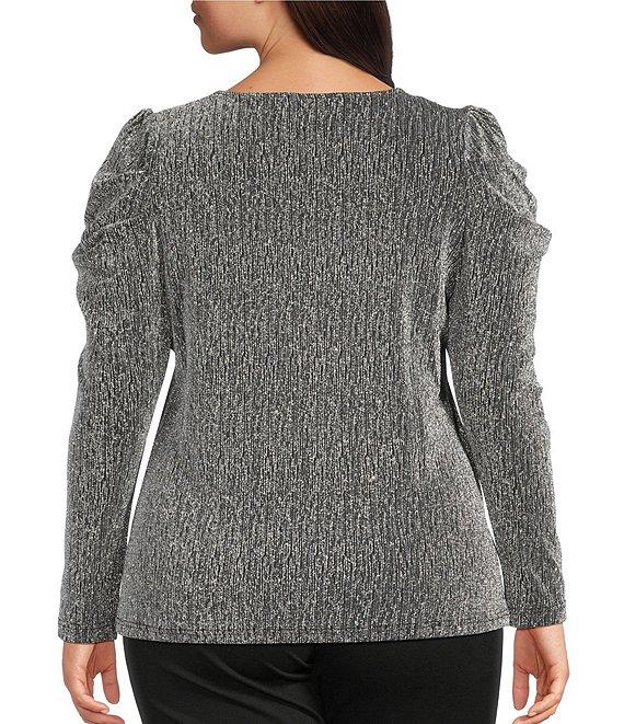 Intro Plus Size Silver Lurex Scoop Neck Long Sleeve Knit Top