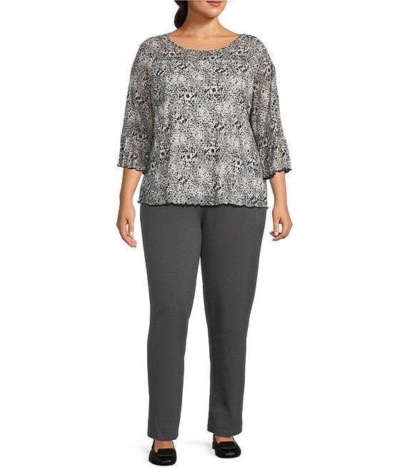 Intro Plus Size Stella Double Knit Slim Straight Leg Pull-On Pants