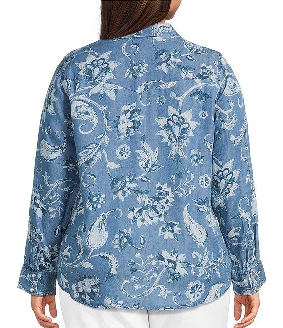 Intro Plus Size Woven Printed Point Collar Long Sleeve Western Shirt