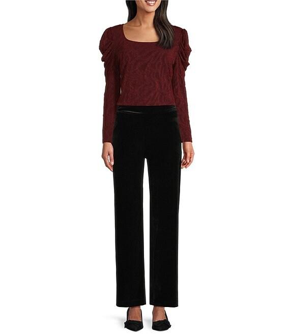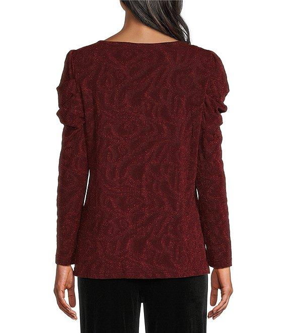 From Intro, this top features: Lurex knit fabrication Scoop neckline Long sleeves Pleated detail at sleeves Straight hem Pullover construction Approx. 24.125" length Nylon /metallic/spandex Machine wash Imported.