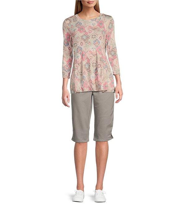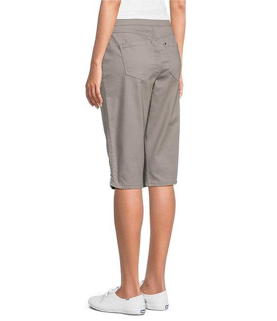 From Intro, these shorts feature:Freedom denim fabrication Flat front silhouetteWaistbandtummy panel Heat-seal trim embellished at side hemPull-on constructionApprox. 16" inseam Cotton/rayon/polyester/spandex, inner panel: polyester/spandexMachine wash/tumble dry Imported.