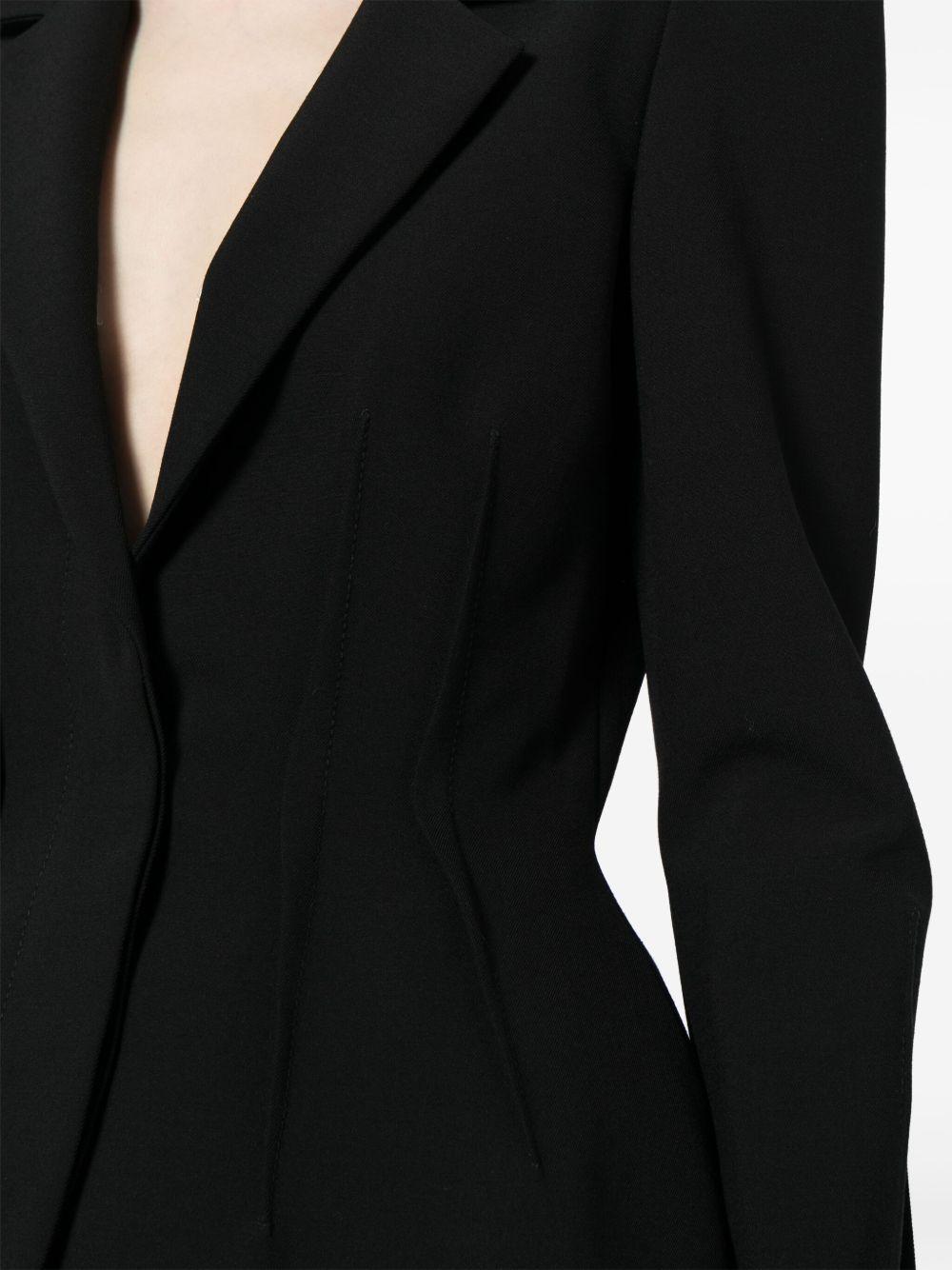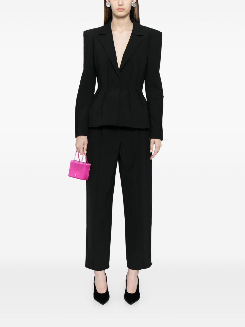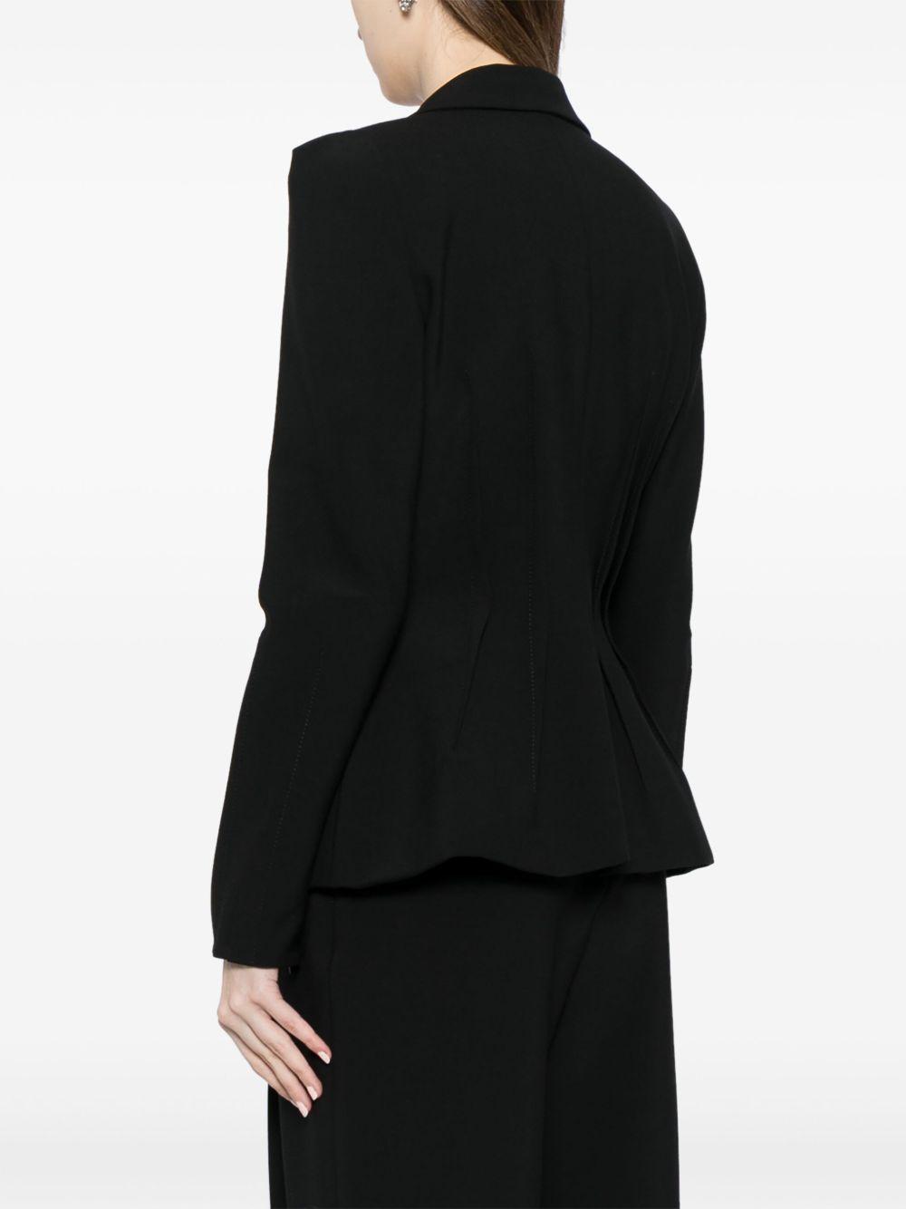 Elie Saab inverted dart blazer | Black | black | virgin wool blend | crepe texture | dart detailing | notched lapels | concealed front fastening | long sleeves | peplum hem | Polyester/Virgin Wool/Elastane/Viscose | Blazers | Jackets | Clothing | Women